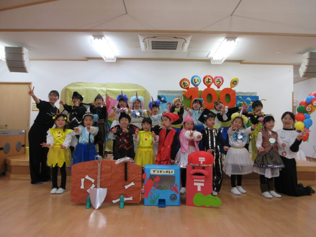春から親しんできた「100階だての絵本シリーズ」を元に、子ども達と担任がたくさん話し合ってストーリーを考え、みんなでセリフを決めました。