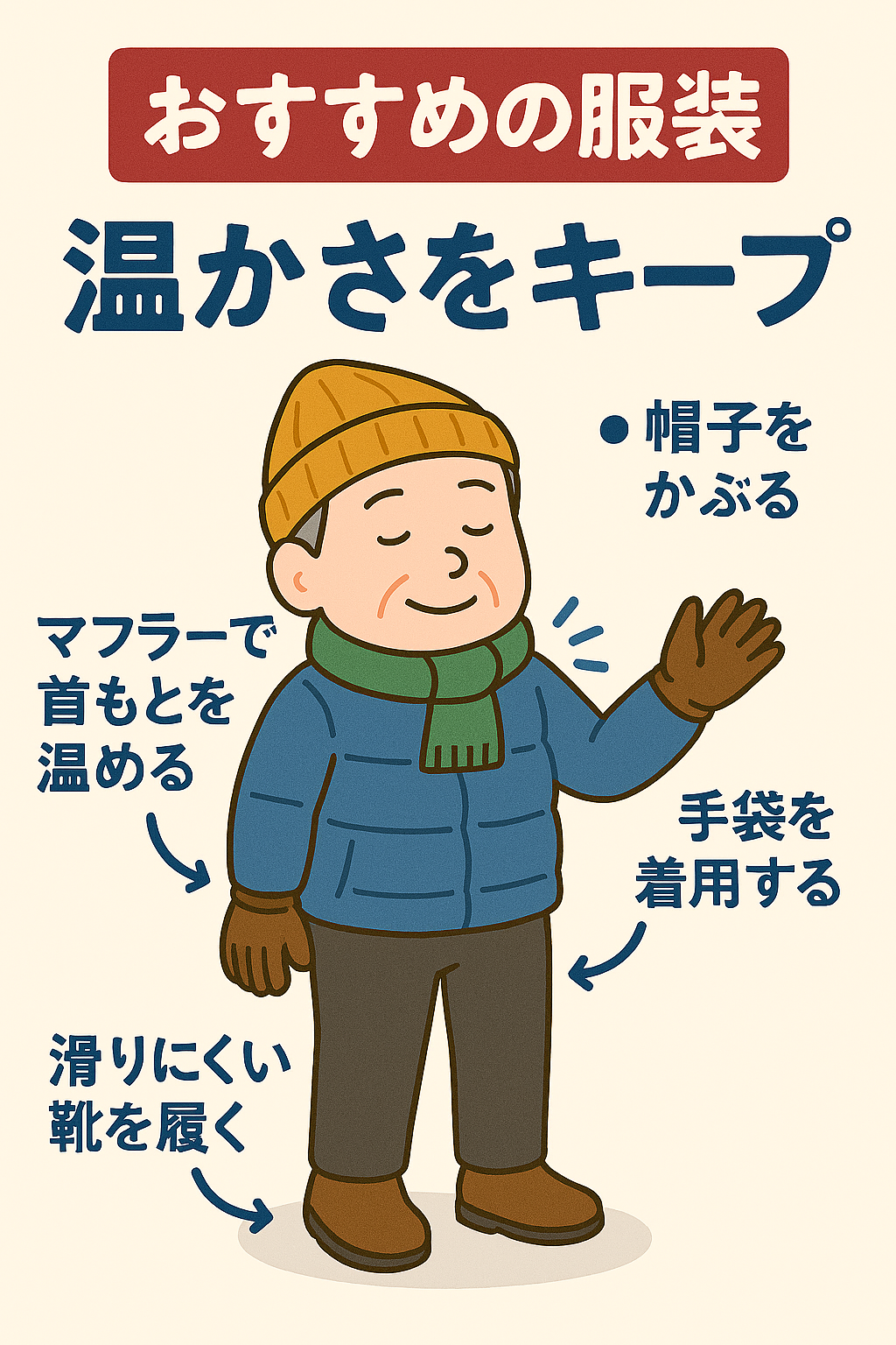冬は寒さや雪、氷による危険が増す季節ですが、ちょっとした工夫と具体的な対策で、高齢者でも安全で健康的に過ごすことができます。転倒や風邪の予防、寒さ対策をしっかり行い、心身ともに元気な冬を過ごしましょう。家族や周りの人とも協力して、快適な冬をサポートし合うことが大切です😊