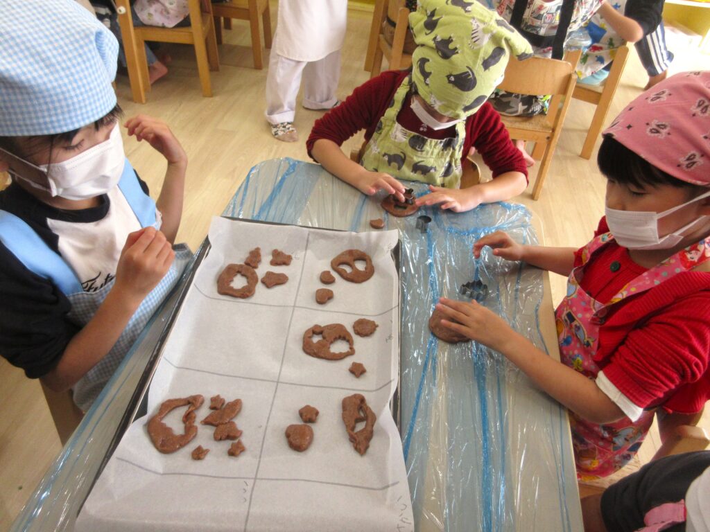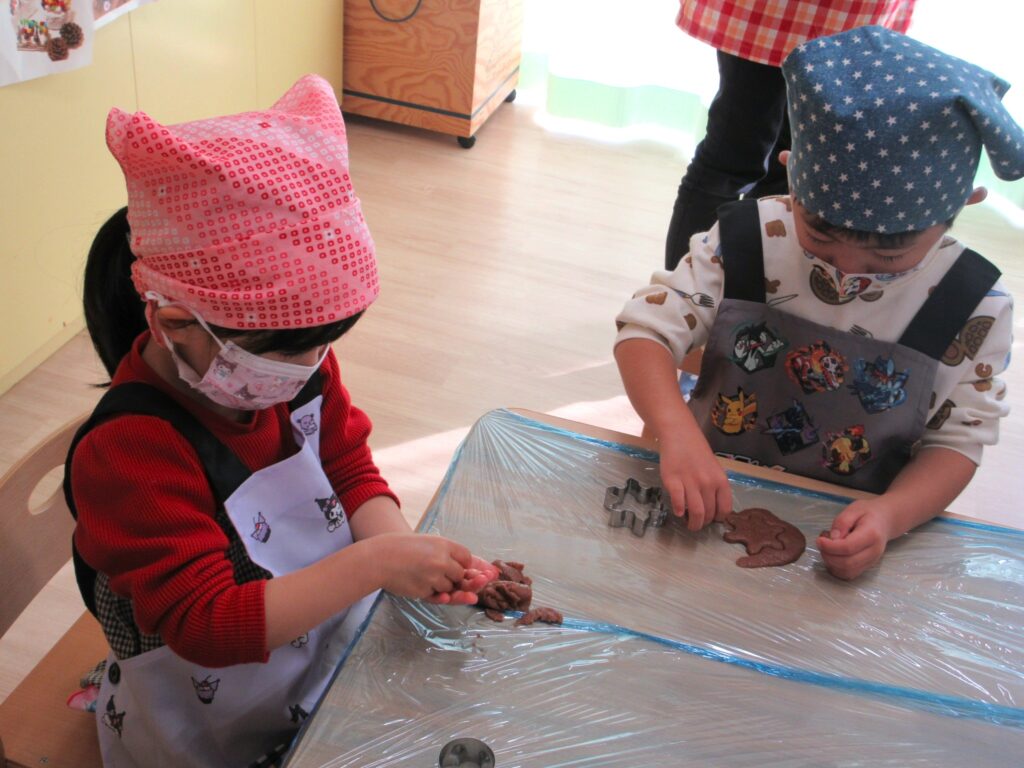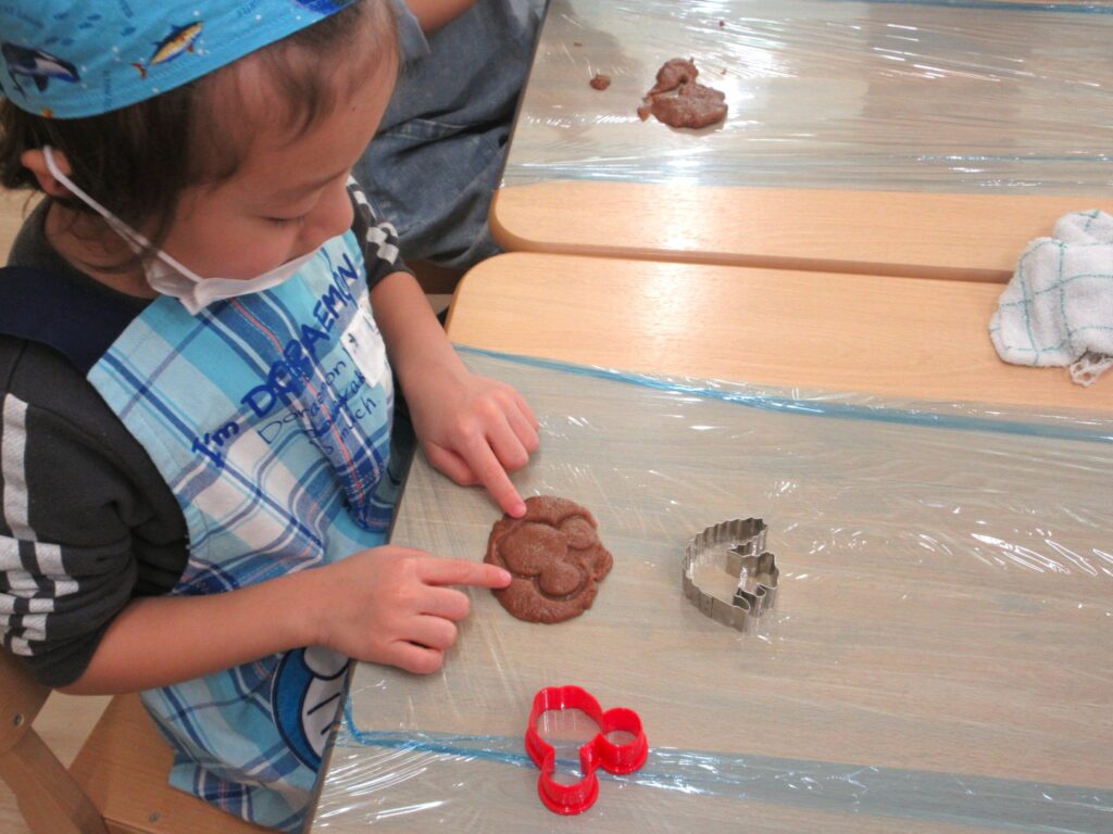 年少かもめぐみさんと、年長くじらぐみさんは「クッキー」づくりをしました★
