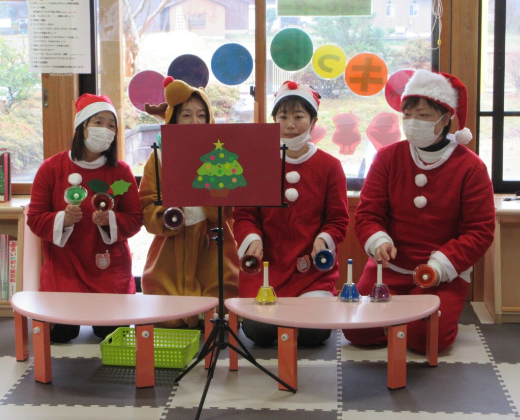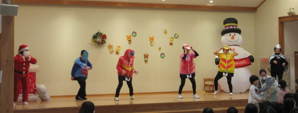 新穂トキっ子保育園のお友達と一緒のクリスマス会にも参加。