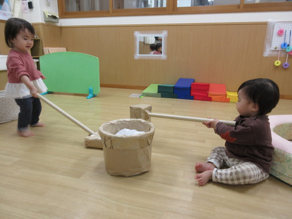 もちつきごっこも遊びの中で楽しんでいます♪