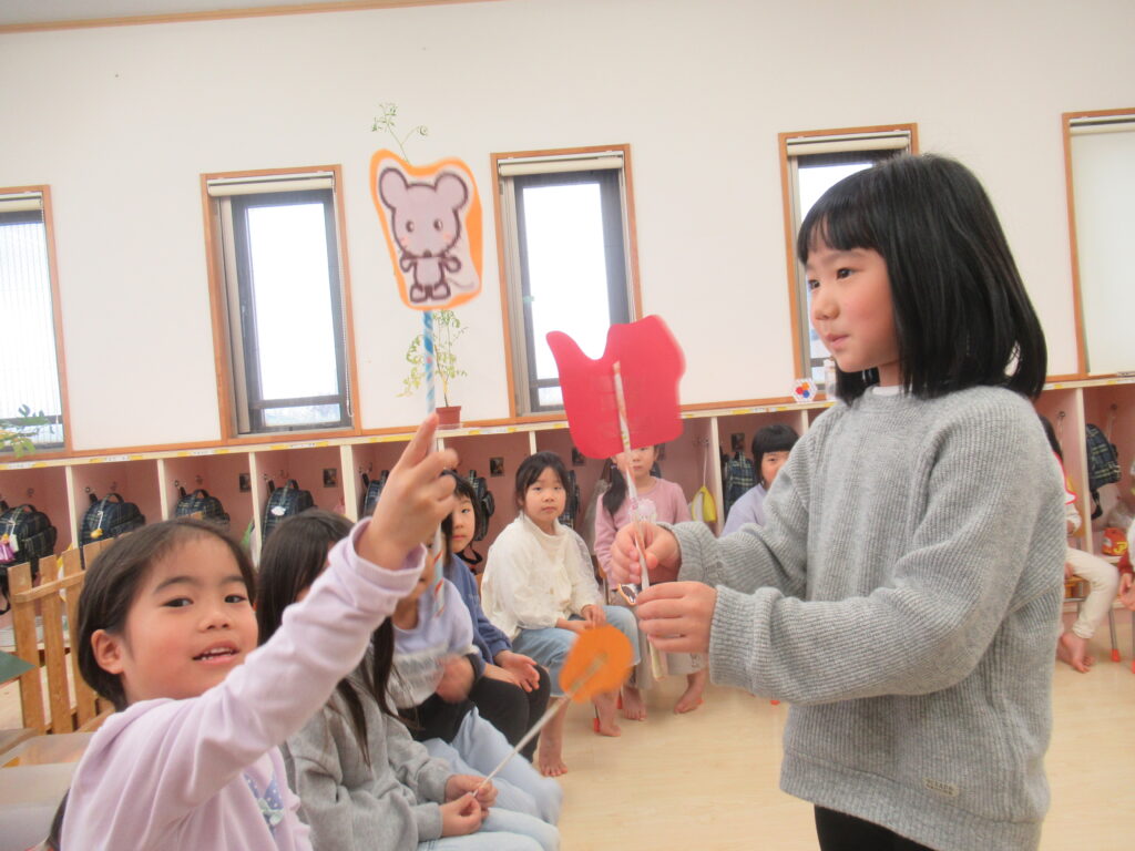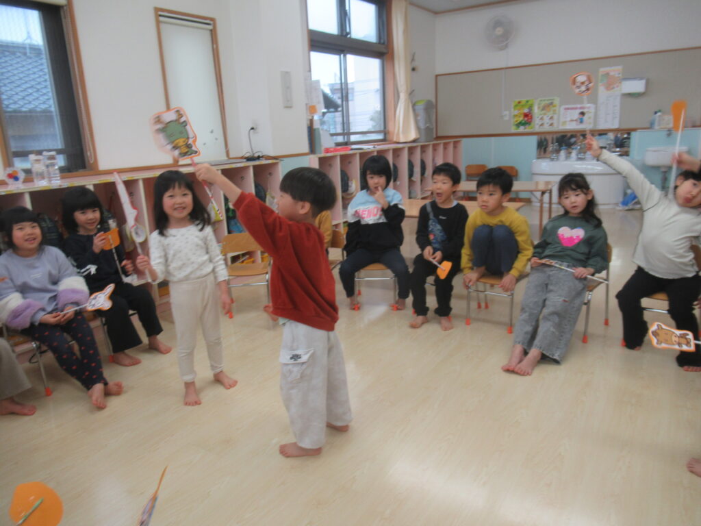 お部屋では『十二支のはじまり』のおはなし遊びを楽しみました。