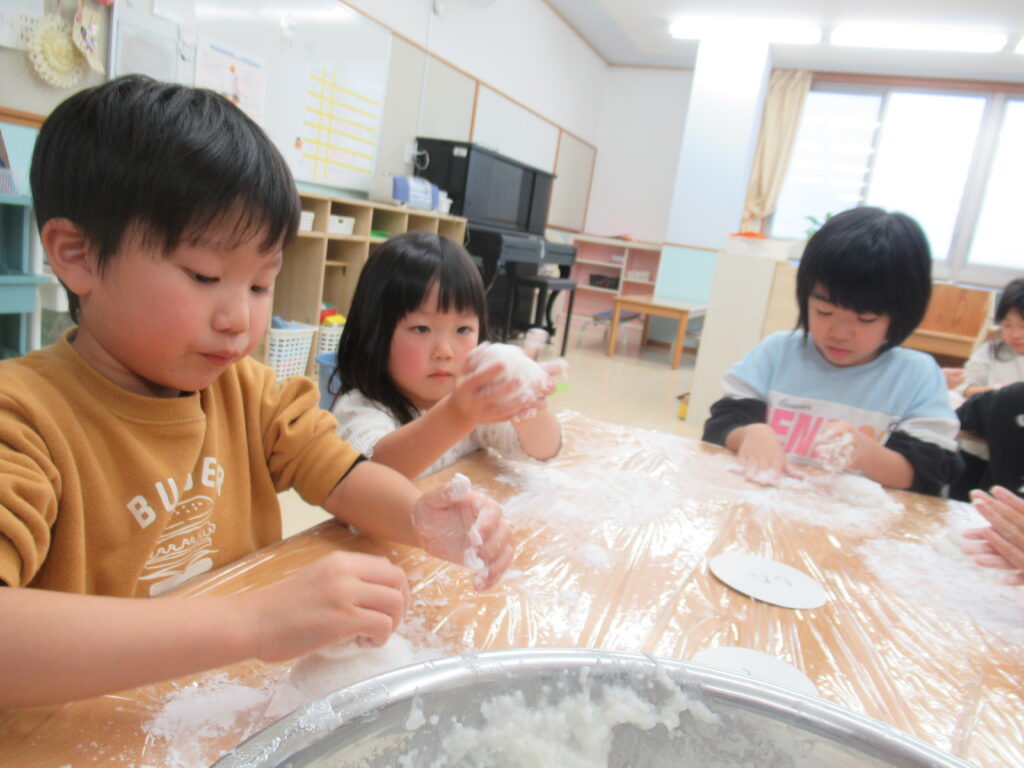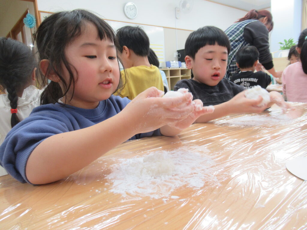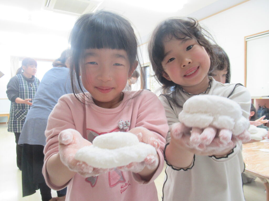 出来上がったおもちで鏡餅作りをしました。