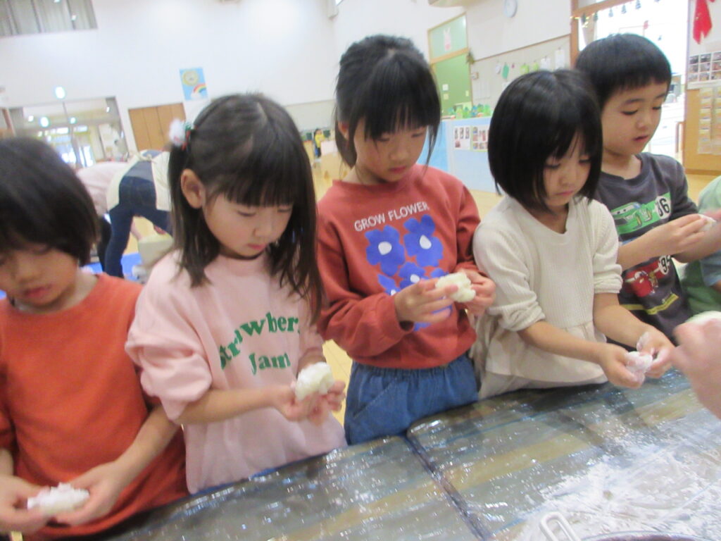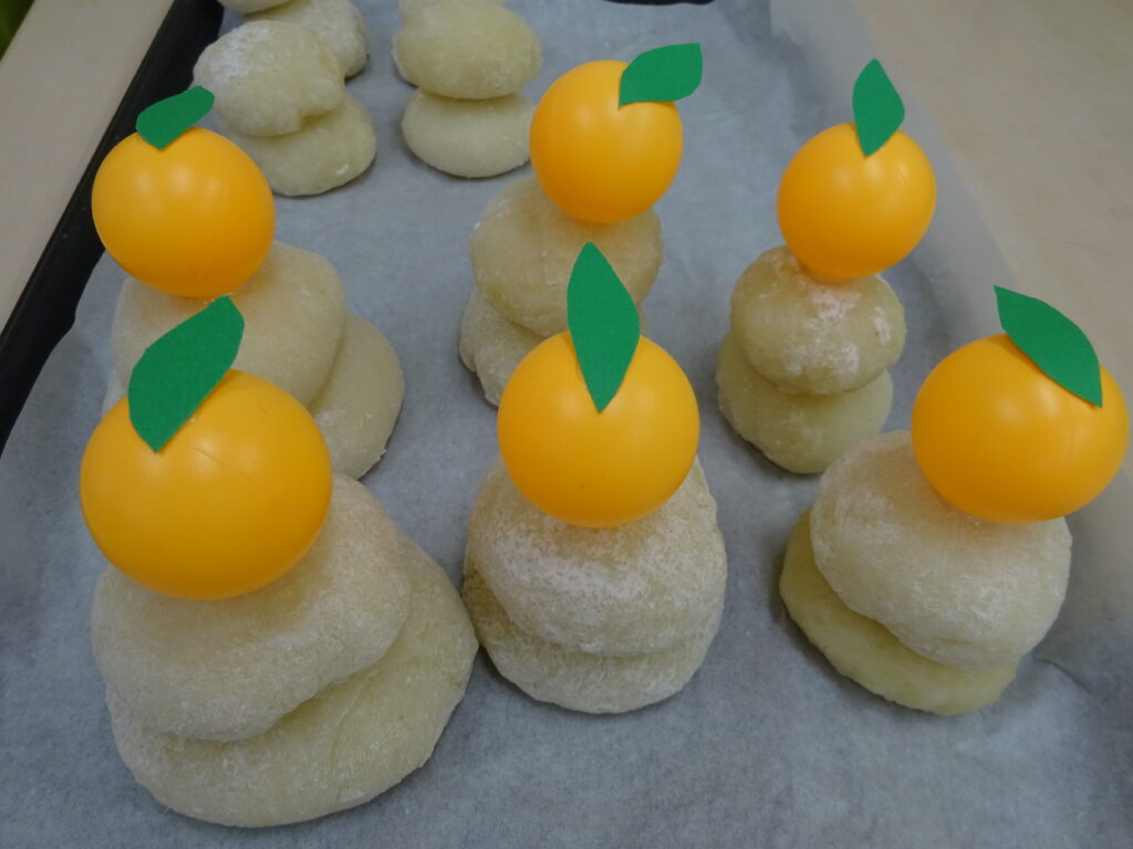 子どもたちは新年の願いを込めて、鏡餅をつくりました。