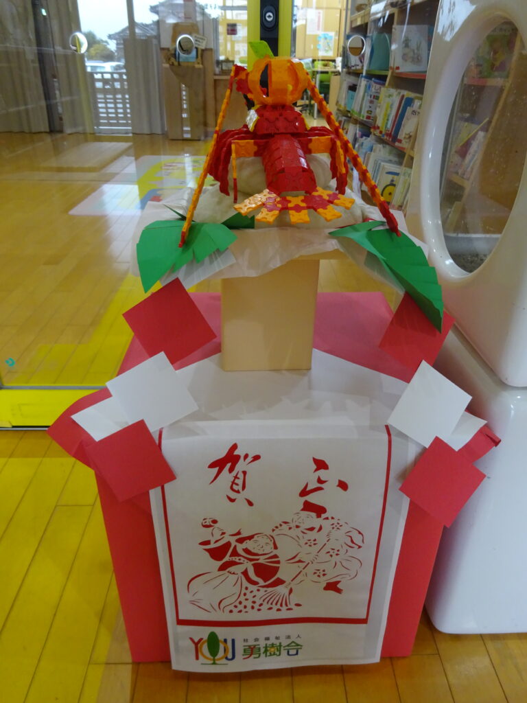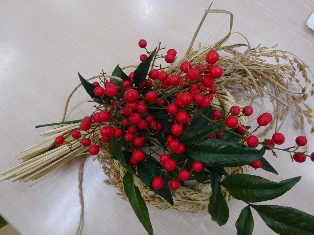 こちらはバケツ稲で育てていた稲わらを使ったしめ飾り!職員の手作りです!!