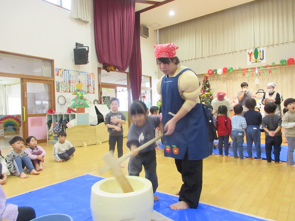 そよ風保育園には、職人が大勢います。藁ない職人、餅つき職人、生け花職人・・・たくさんの職人の手によって、お正月の準備が進んでいます。