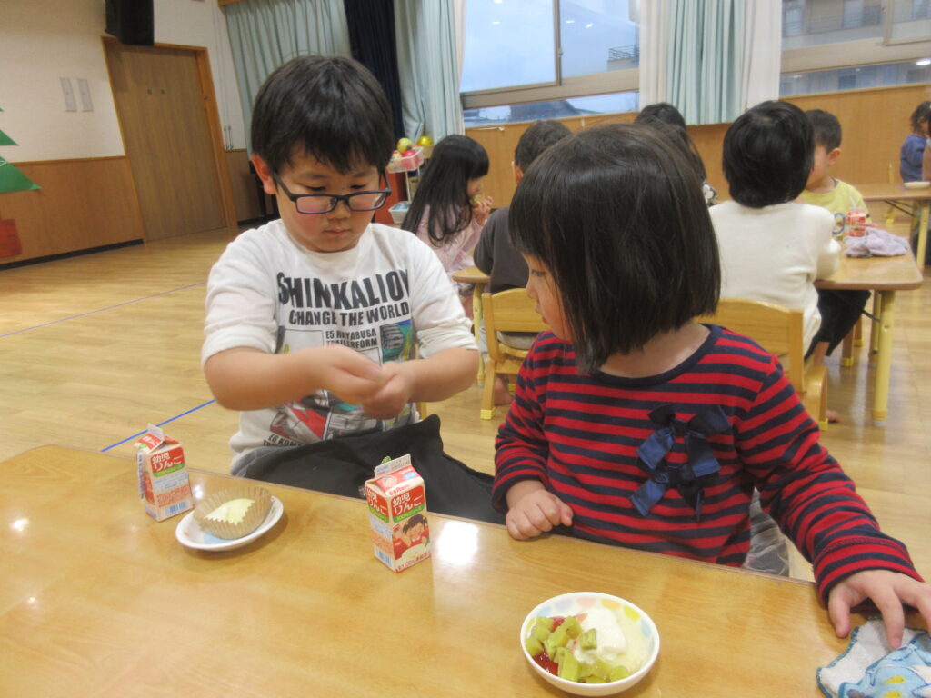 クリスマスの日🎄給食の先生から子どもたちに美味しいおやつのプレゼントをもらいました🎁