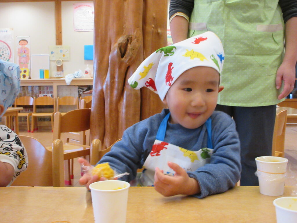 秋にはサツマイモ掘りをして、初めてのクッキングをしました。