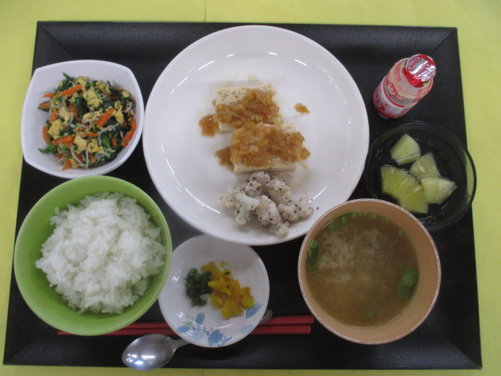 赤魚の野菜あんかけ 白菜のごま和え ご飯 味噌汁 漬物 果物🍈