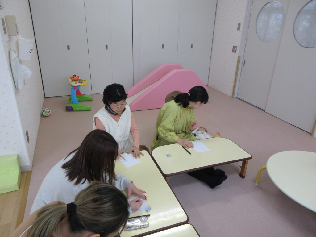 実際にお母さんたちが体験する『描いてみよう』のコーナーは毎回大盛り上がり♫