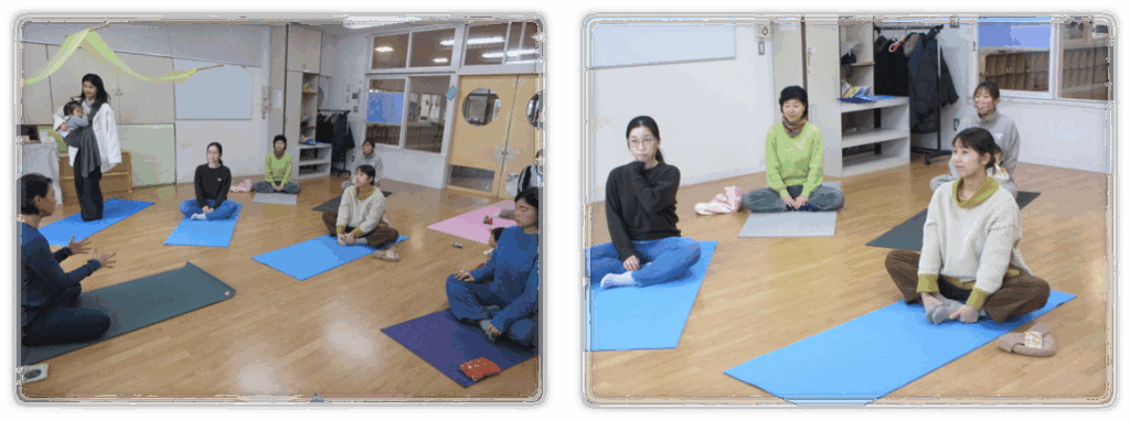 日々の生活の中で悩んでいる体のことを話し、先生からヨガを学びながら、体験しました。