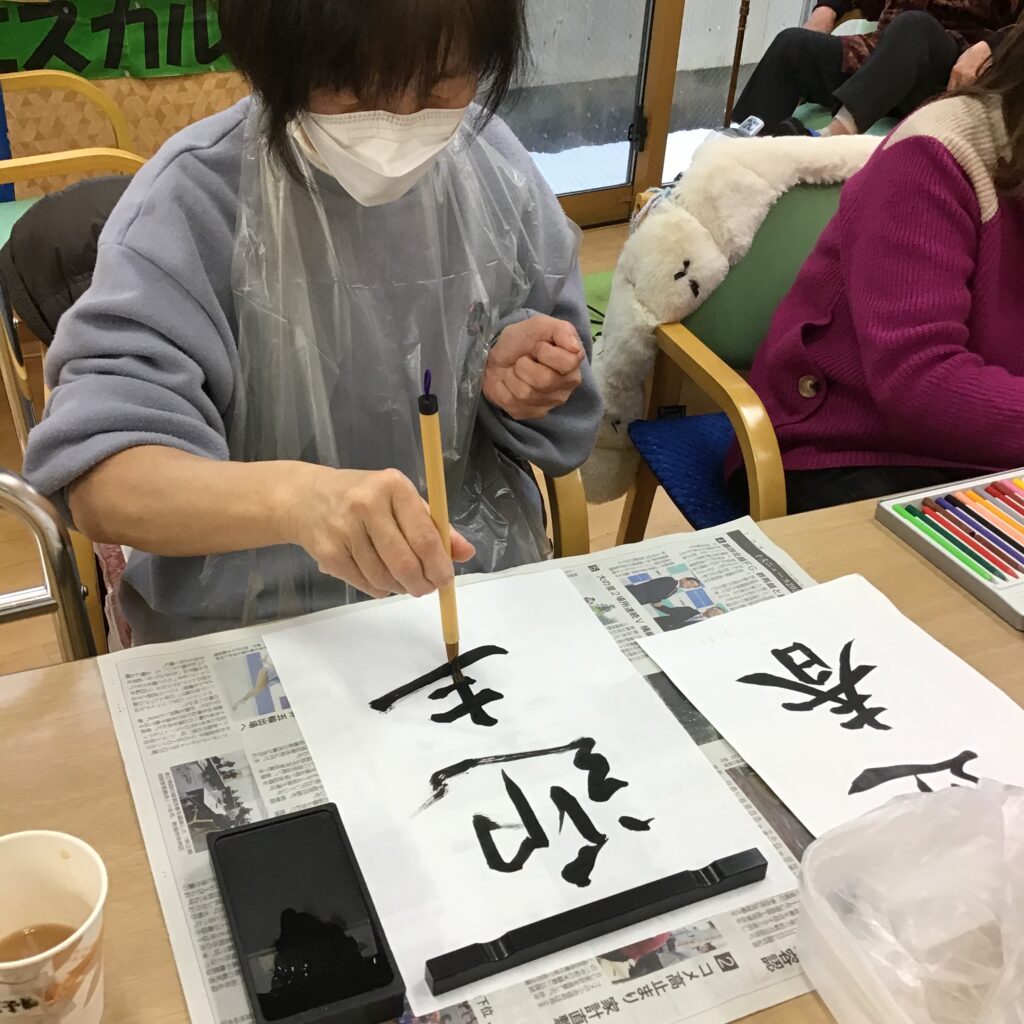 新年の書初め【勇樹会日の出デイサービス】