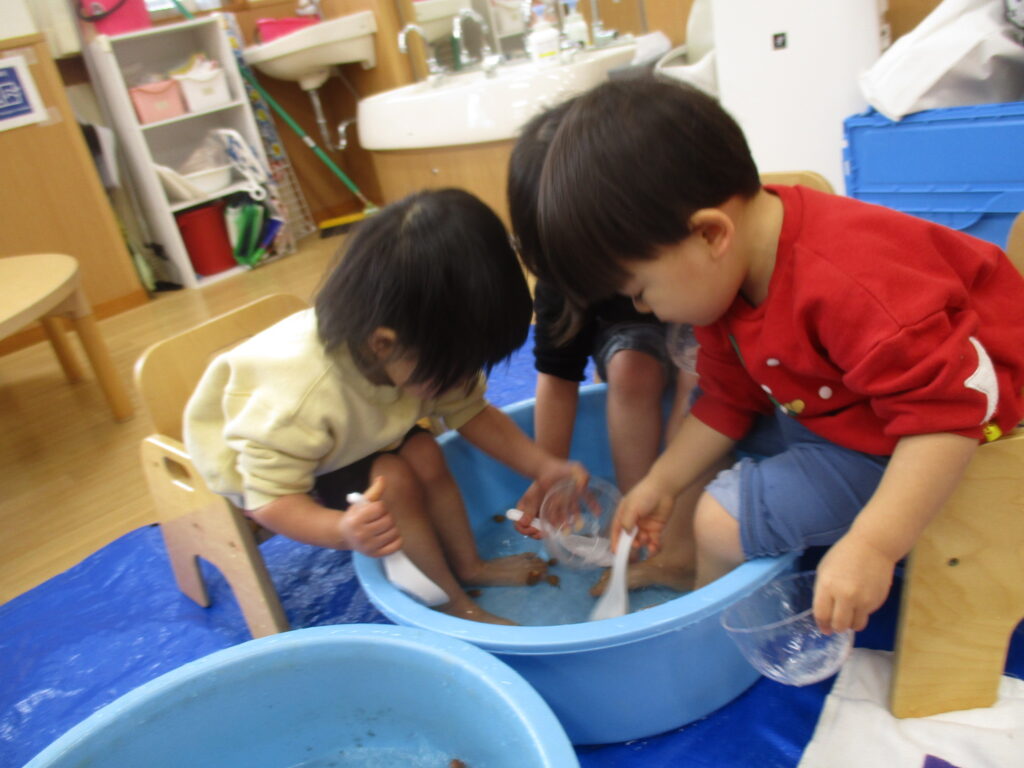 自分から手につけ始め、それを面白そう!とお友だちが真似をして・・・楽しさがどんどん広がっていきます。
