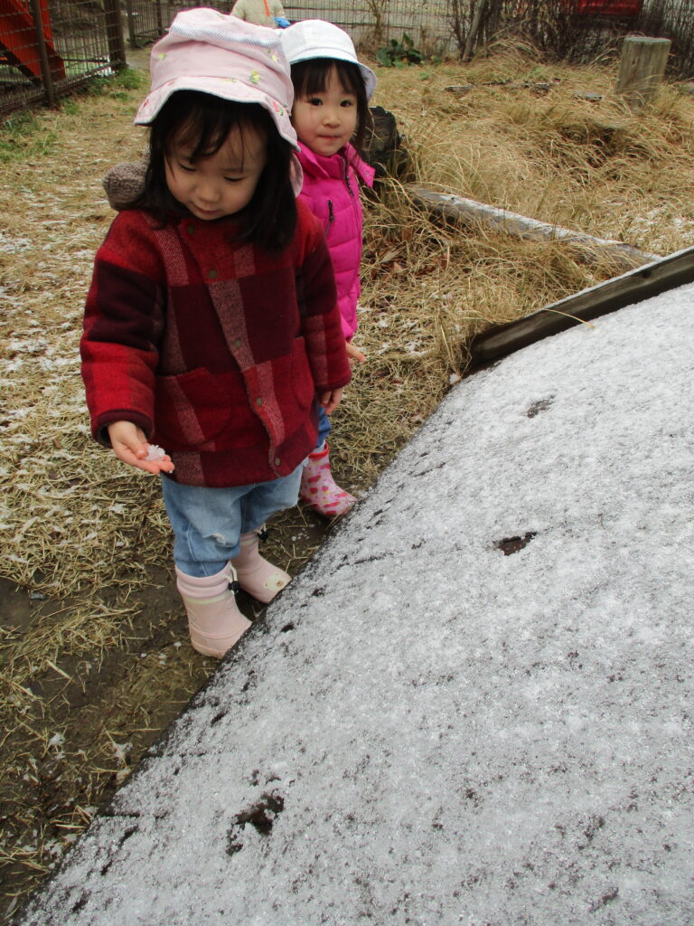 自分の思っているイメージと少し違うな…と感じているようです。「氷に似ているね。これは雪だね。ちょっとふわっとしているね。」雪と氷・・・その違いにも興味が出はじけているようです。