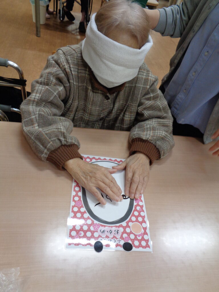 目隠しをして顔のパーツを乗せていきます(/・ω・)/