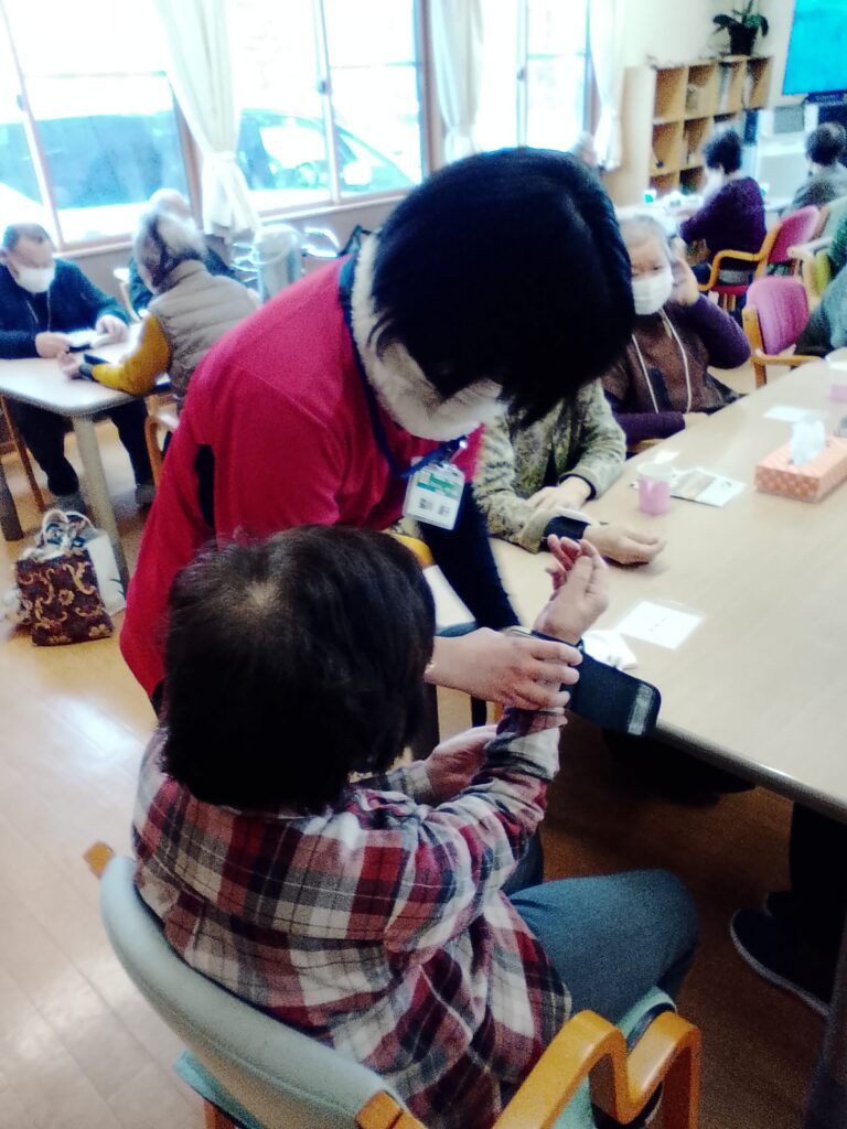 朝は到着したお客様からバイタル測定を行います。「昨日は良く寝れた」「今日は調子いいよ!」そんな会話を交わしながら、血圧や体温を測定していきます。✨✨✨
