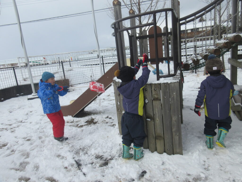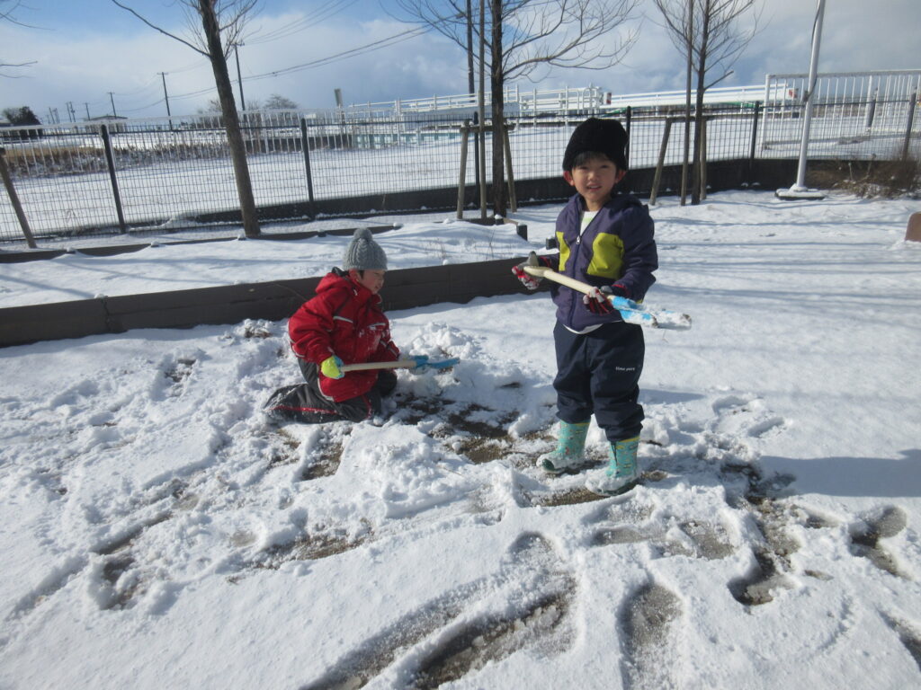 思っていたよりも積雪量は少なかったのですが、子どもも保育者も大盛り上がりで楽しみました。