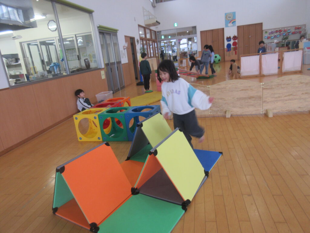 そして1月23日(金)の今日は保育園に登園するなりホールで運動遊び!!