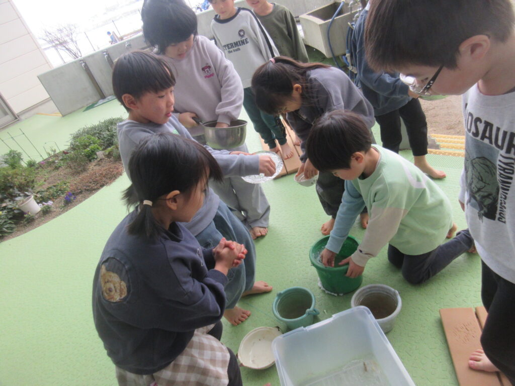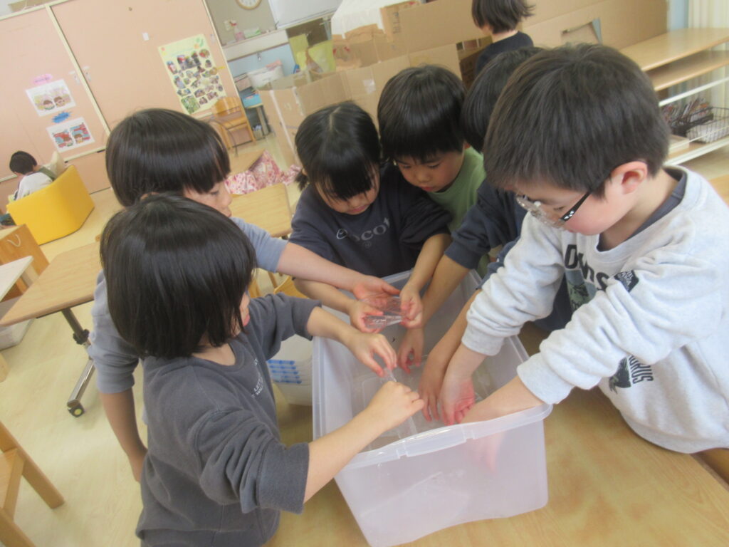 「また夕方やろう~~」と話していた子どもたち。室内だと溶けるからという理由で外でまた冷やしていました😉
