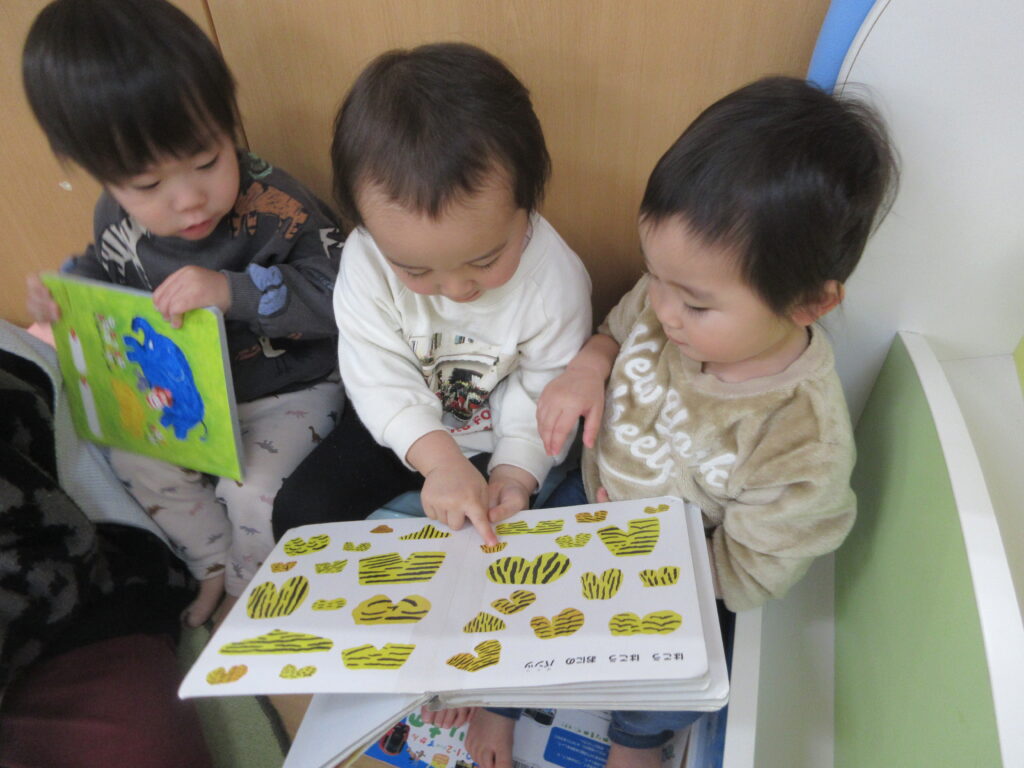 1月に入り節分に向けて「おにのパンツ」の絵本を絵本コーナーに置いておくとすぐに見つけた子どもたち。おたよりでもお伝えしましたが本当に絵本がだいすきな子が多く、こちらの絵本も「これよんで!」と毎日保育者のもとへ持ってきます😊