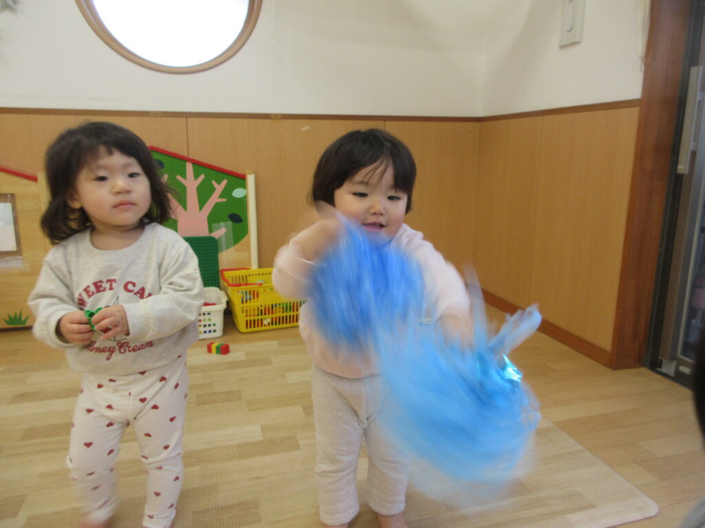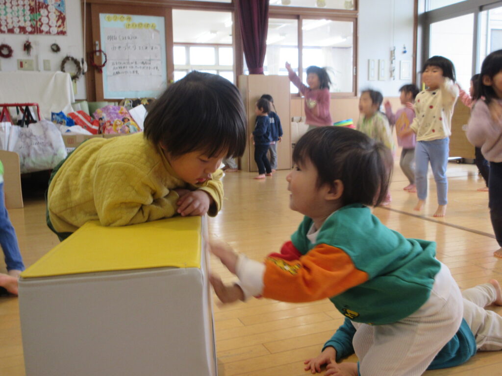 最近、お兄さんお姉さんと一緒に遊ぶことをとっても楽しんでいる子どもたち。ホールに行くと、「○○ちゃんだ~」「○○くんかわいい~」とお兄さんお姉さんがお部屋から出てきてたくさん話しかけてくれ、嬉しそうにしています🥰