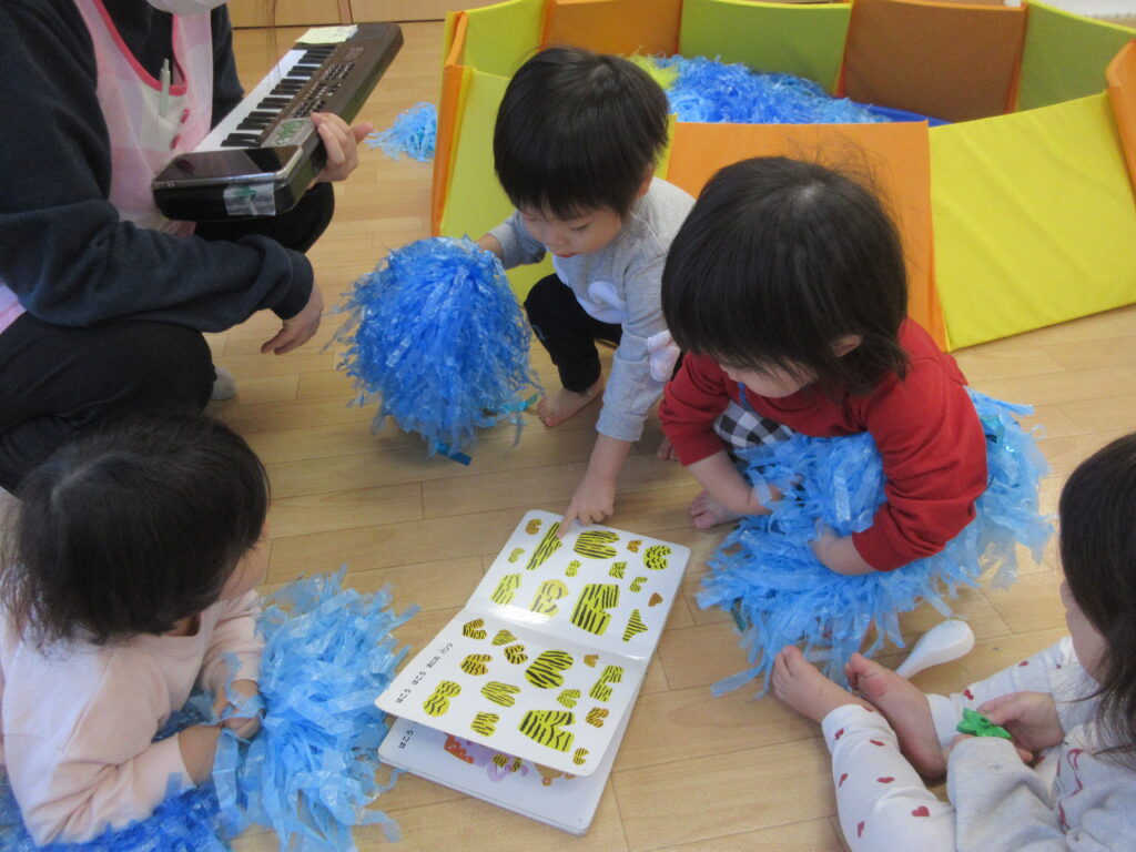 歌を歌いながらポンポンを持って踊ったり、保育者の振りを見ながら真似っこしたりするお友だちも!楽しみ方はそれぞれです✨