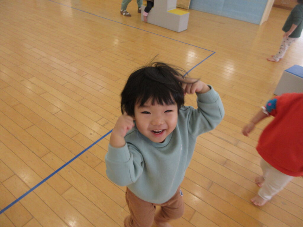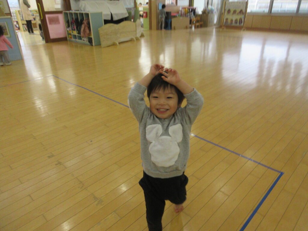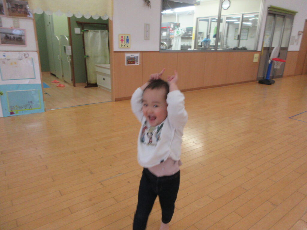 「おにだぞ~」と手で鬼の角を作り、お友だち同士でおいかけっこを楽しんだりしています!