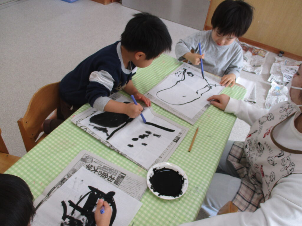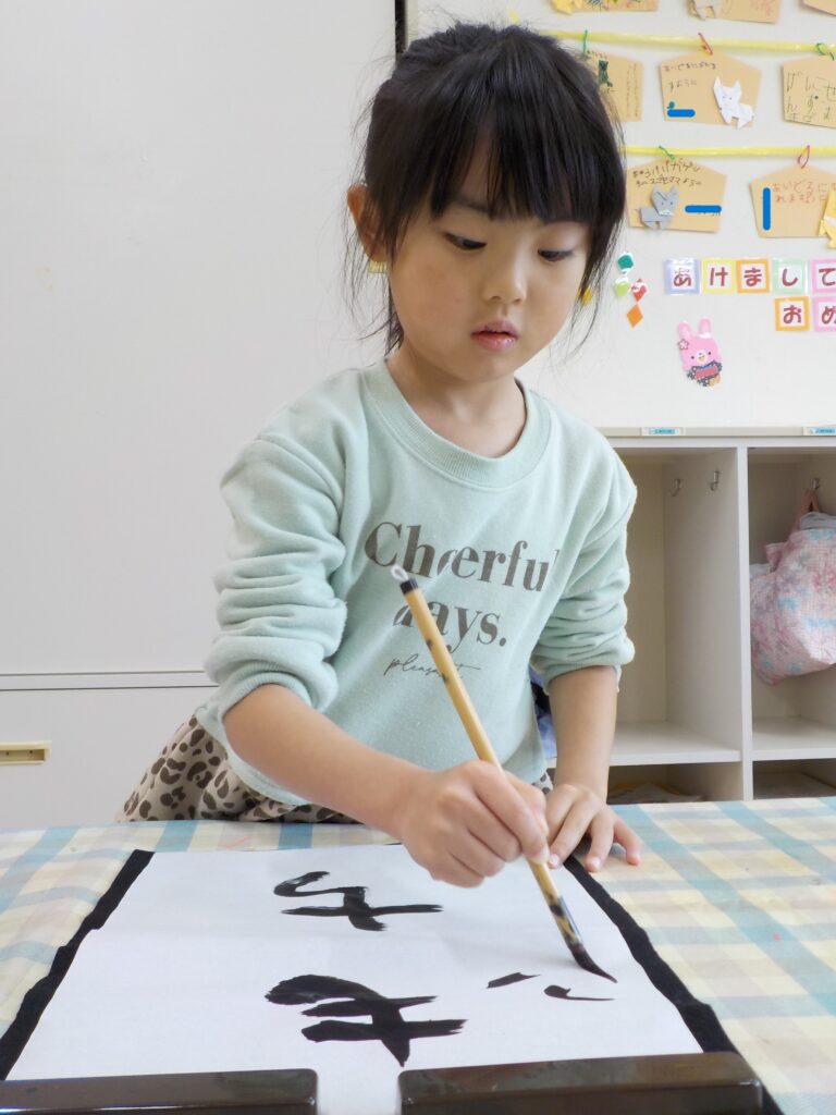 〈書初め・・・たいよう組(5歳児)〉