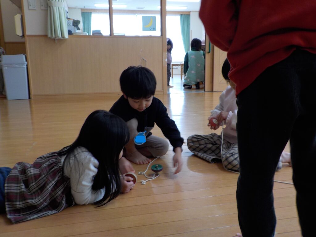 休み中におじちゃんやおばあちゃんとお正月遊びをして遊んだという子も多く、思い出を友達同士で話しながら楽しんでいました。
