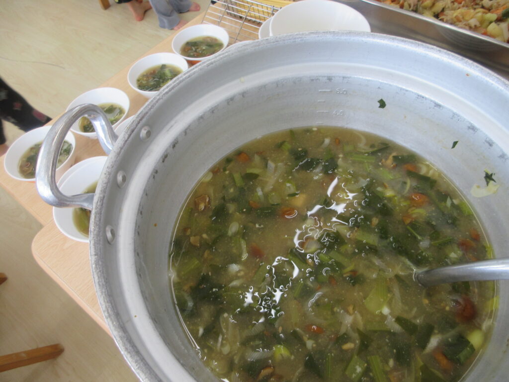 そして、麹の粒がたくさん入っていることに気づいたお友だちもいましたよ!!!味覚だけでなく、視覚でも食事を味わっているのだなと感心しました😌👏