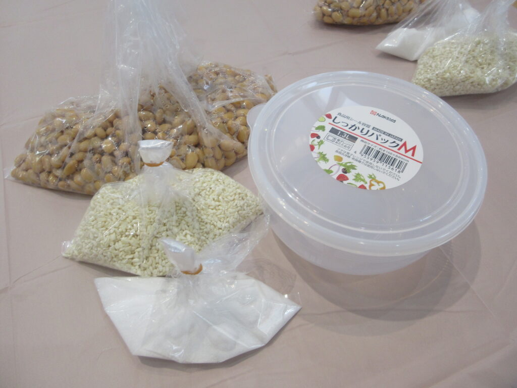 今回は、新飯田で糀屋団四郎を営んでいる、高橋さんを講師にお招きしてみそ作りを教えていただきました。