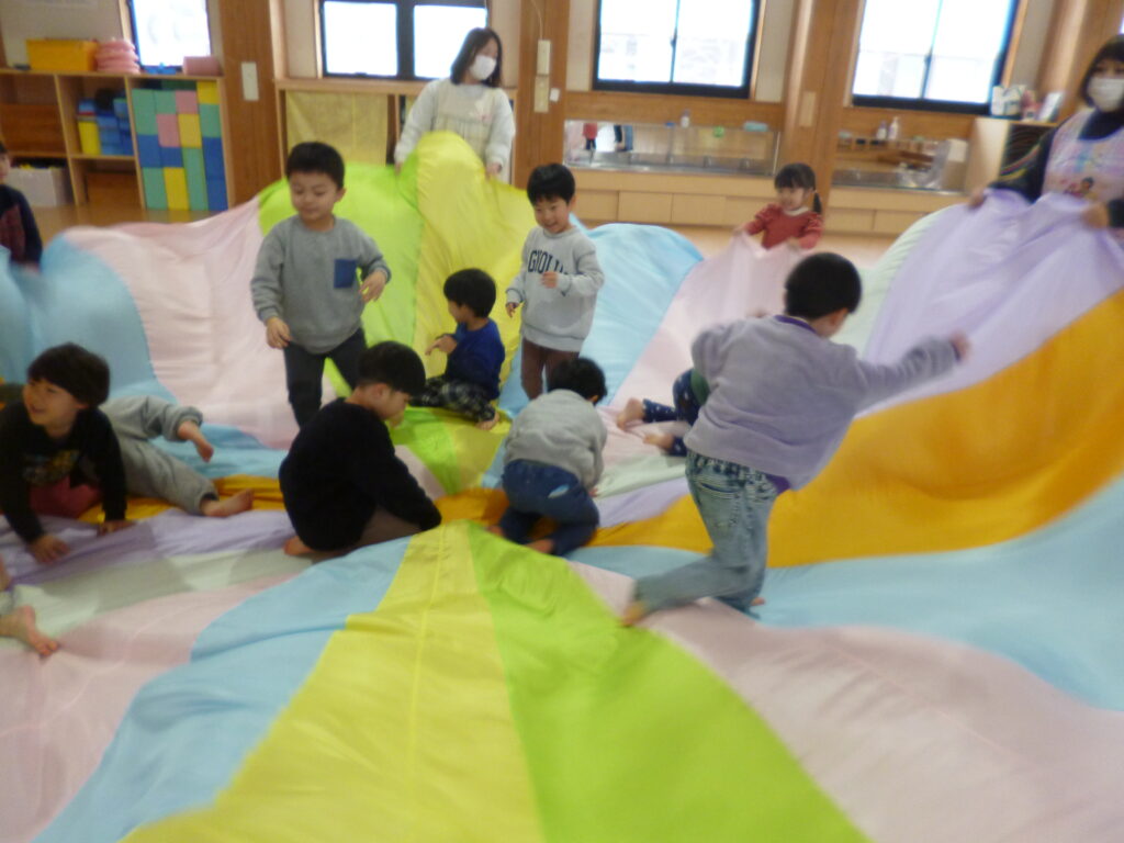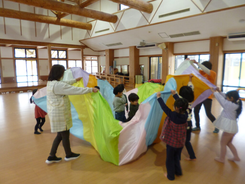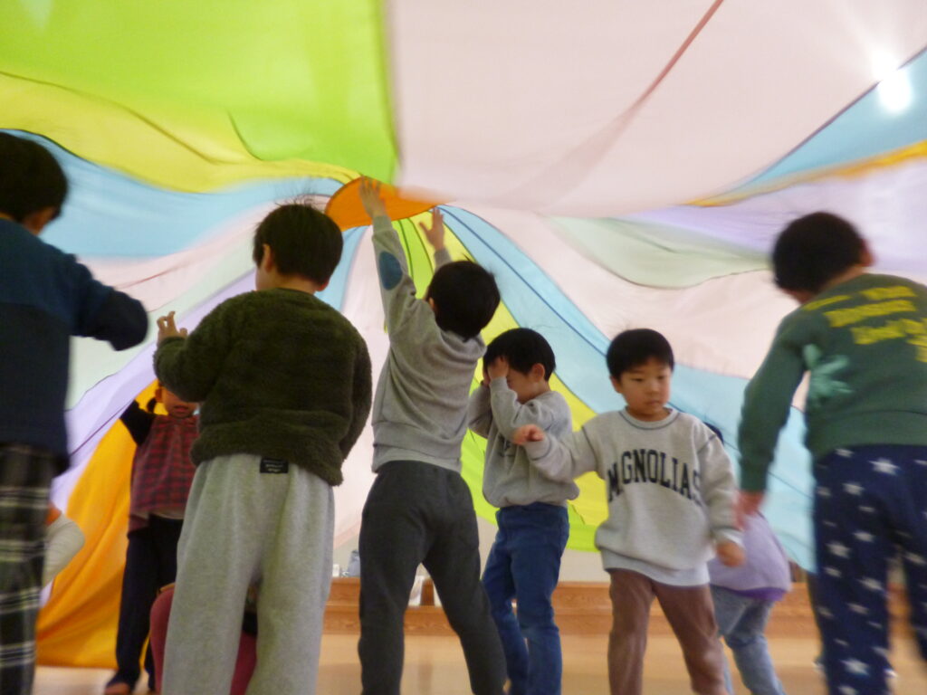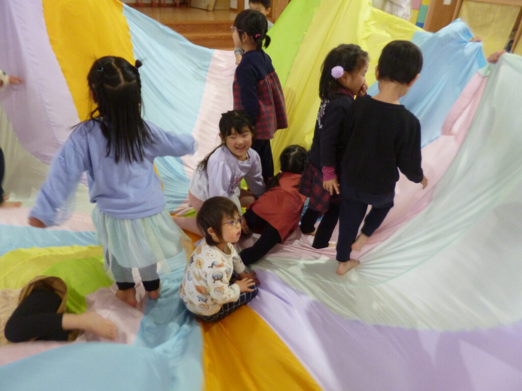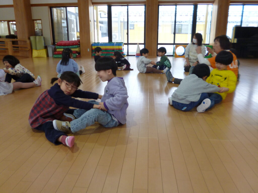 指や手首、腕を動かしたり、友だちとギッタンバッコン、太鼓をたたいたりと楽しんでいました。