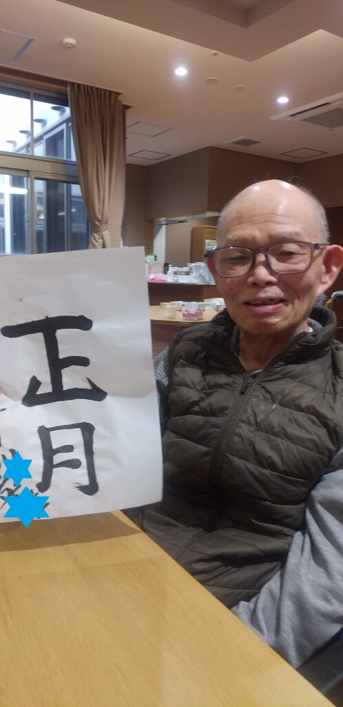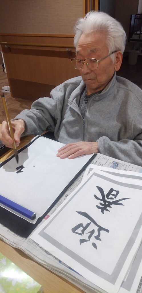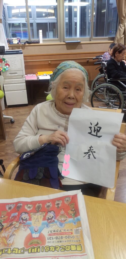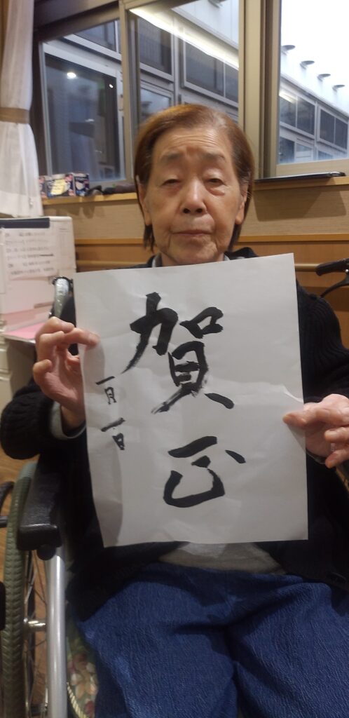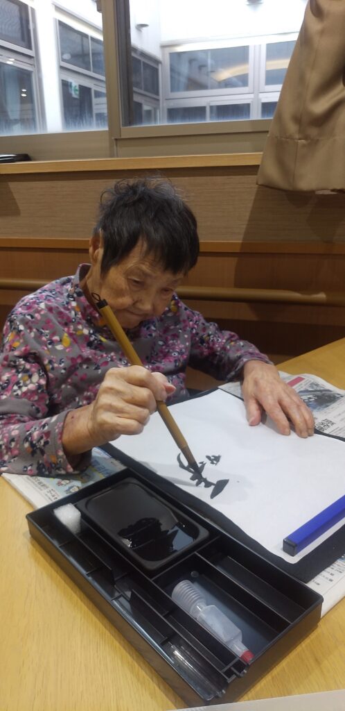 お客様が真剣な面持ちで筆を走らすと、4階ユニットには一気にお正月の雰囲気が漂います。