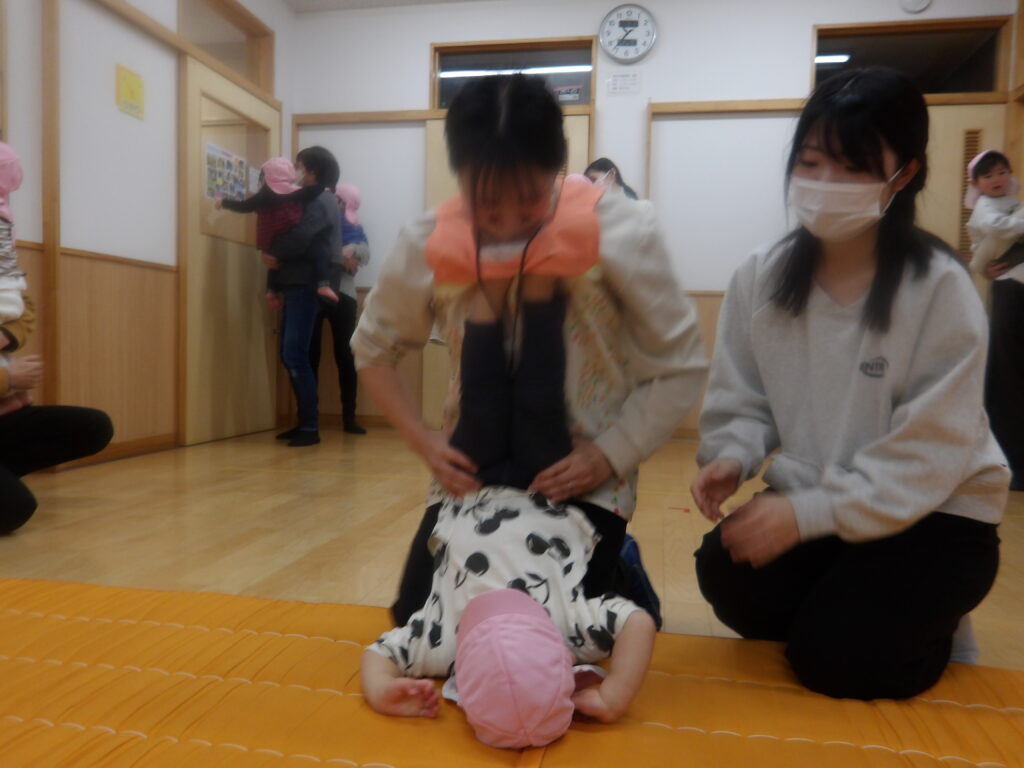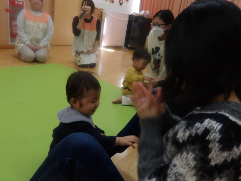その後はわらべうた!「だれとだるまと」でお家の人と目を合わせていいお顔♪