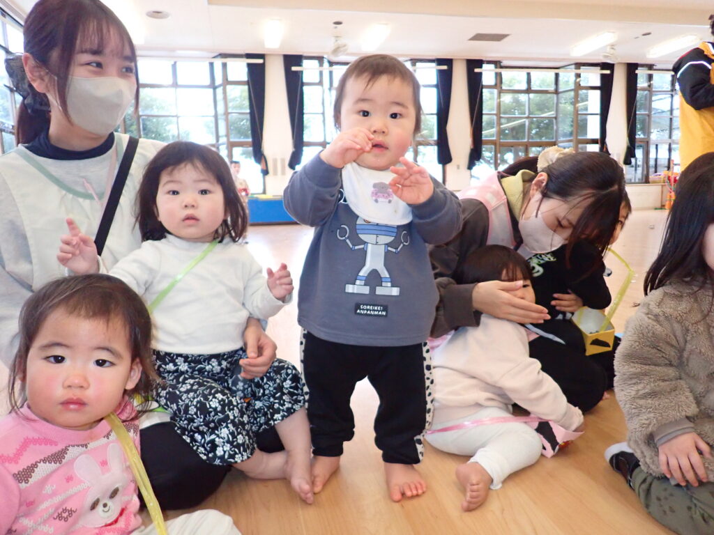 沢山豆まきをした後に赤鬼さんから何やらお話が…。実は赤鬼さん、みんなが青鬼さんに豆を投げているのが悲しかったみたい。青鬼さんを守るために怒っていたことを教えてくれました。赤鬼さんから「青鬼さんをいじめないことと、お友だちや先生、おうちの人にも意地悪しないことを約束してくれる?」と聞かれると「いいよー!」「お約束できる!」と大きな声で答えてくれた子どもたちでした。最後は鬼さんに「ごめんね」と「ありがとう」を伝えて仲直りすることができました。