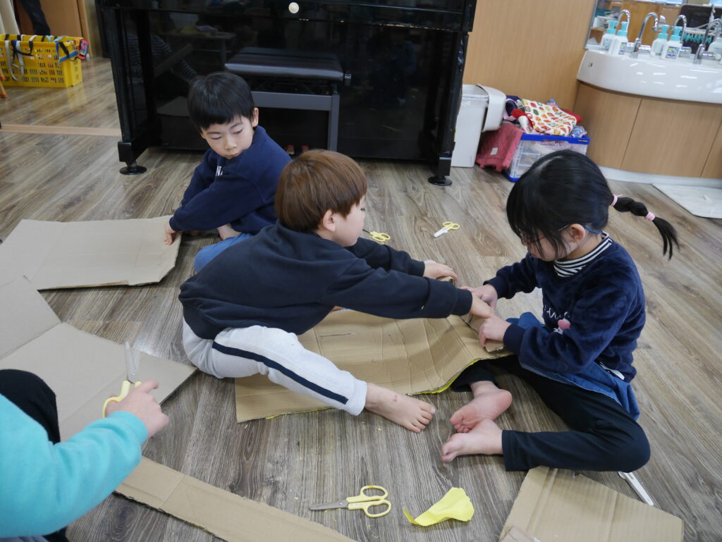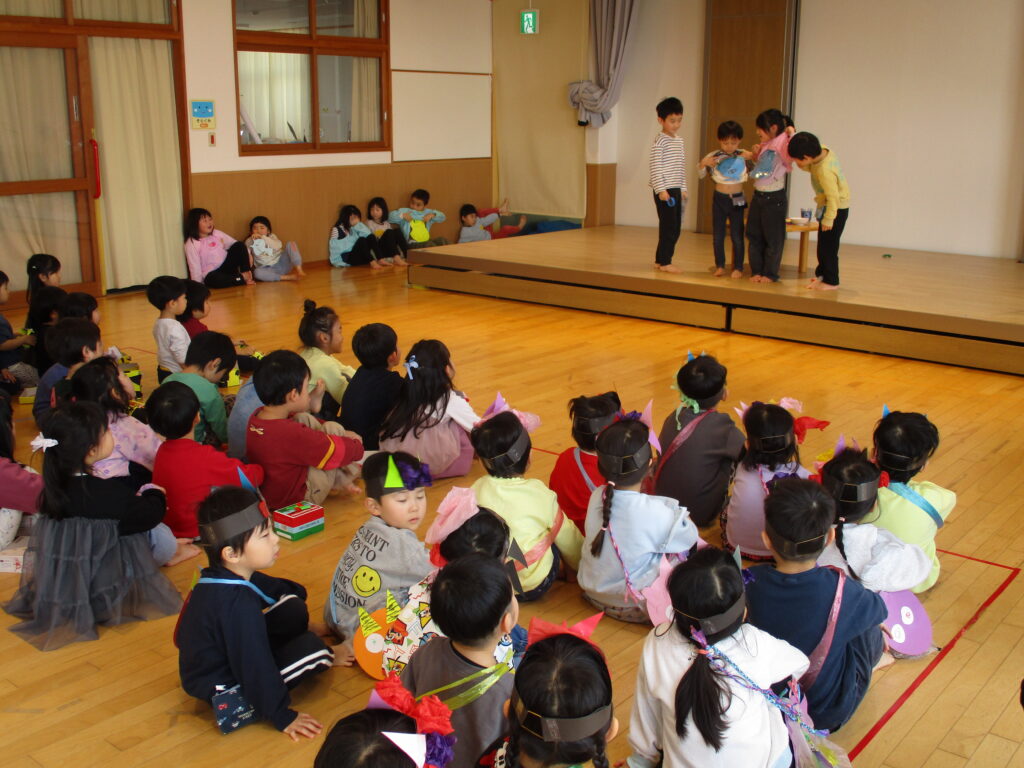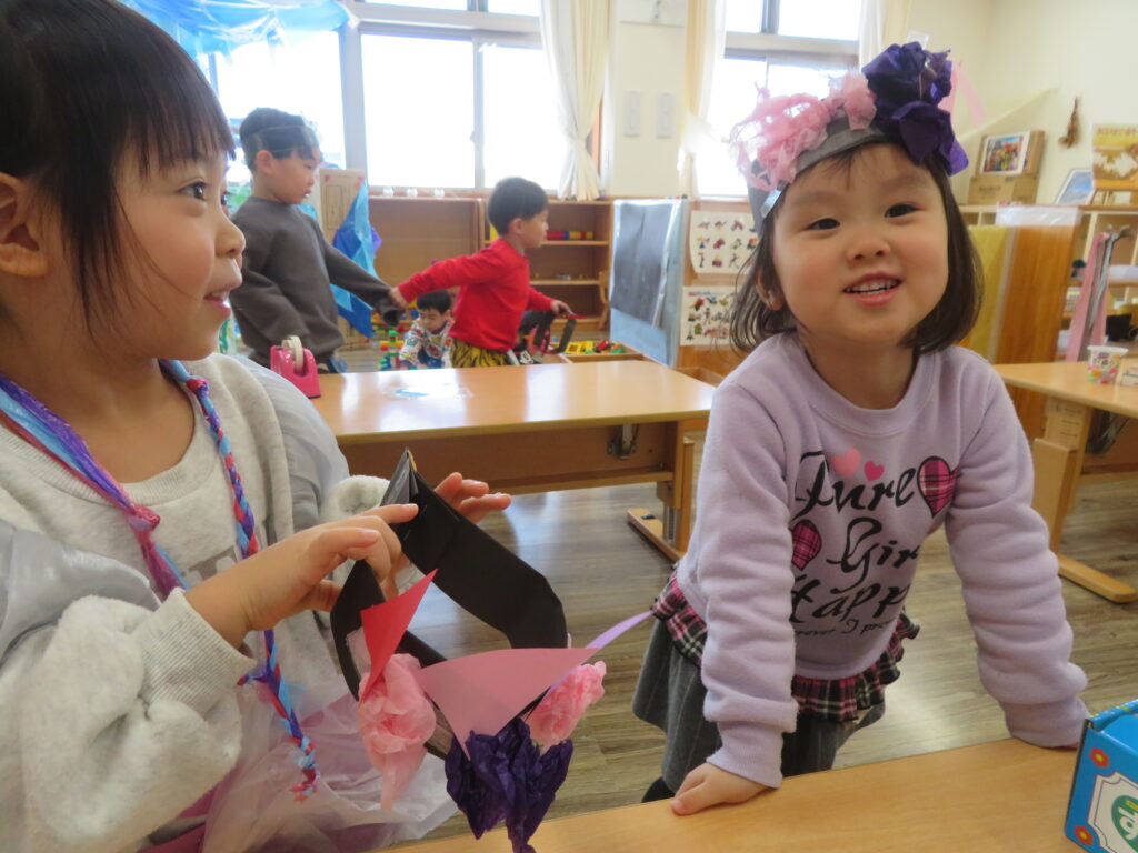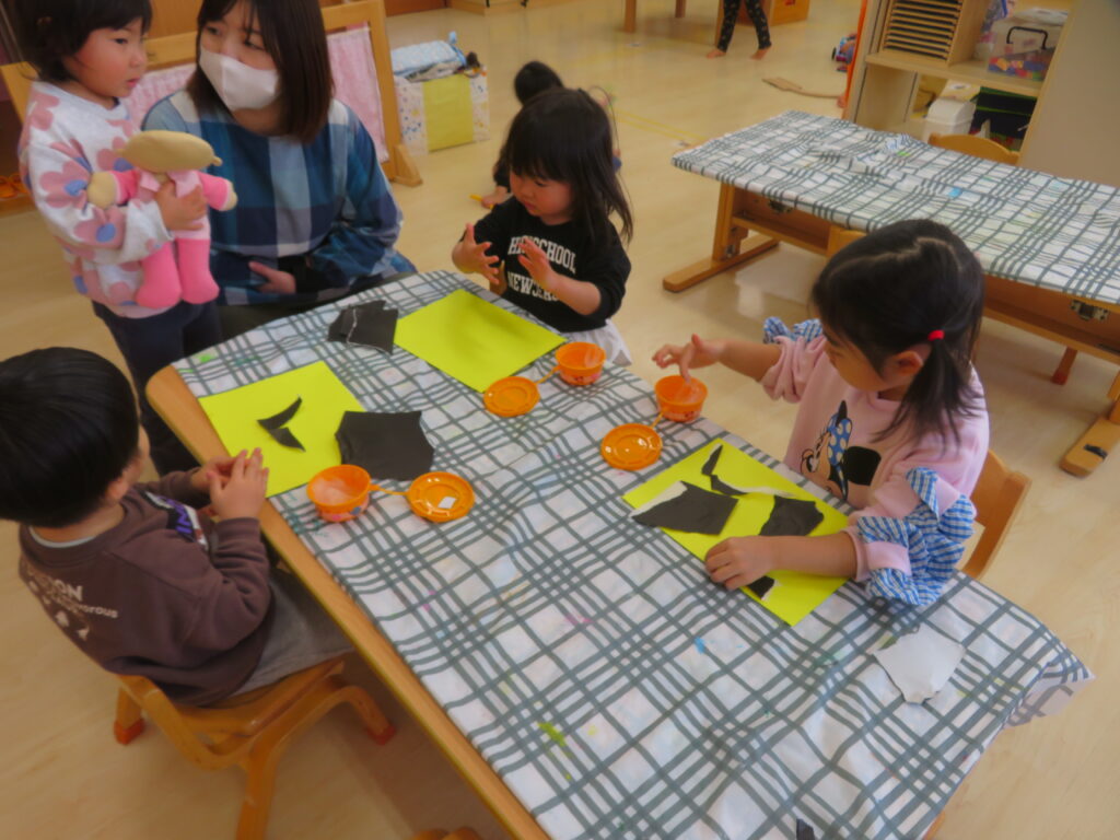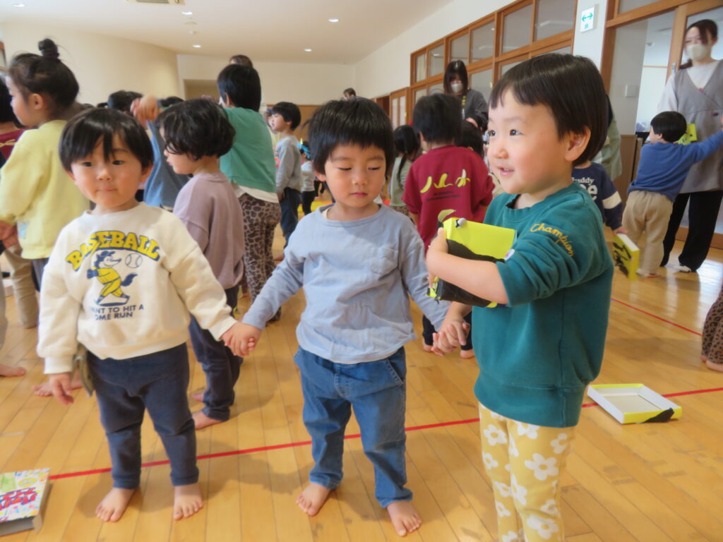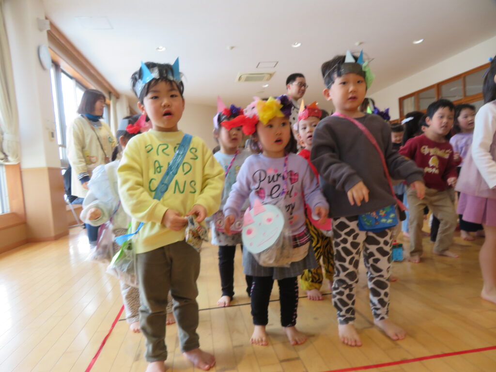他のクラスのお友だちも、豆入れを作ったりと豆まき会を楽しみにしてきました!