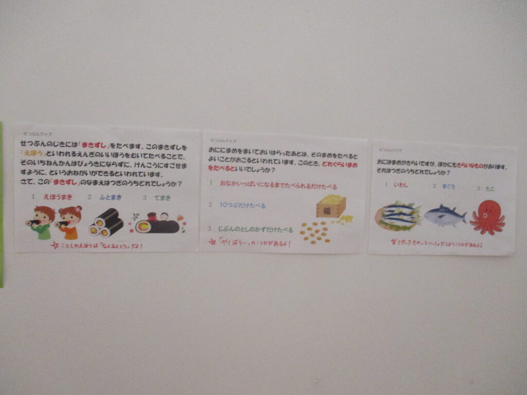 鬼が去った後は、福の神からお手紙とおいしいお菓子のプレゼントが届きました!福のこもったお菓子を食べて、今年も笑顔が溢れる一年にしていきたいですね!