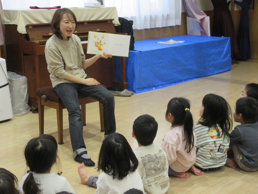 保護者会主催行事の本宮かおり先生によるリトミックが2・3歳児クラス対象に行われました。ピアノの音や先生の声に合わせて、様々な表現を楽しみましたよ♬『どうぶつまねっこたいそう』『だるまさんが』の絵本を見てなりきったり、季節に合わせた表現遊びをしたり…大満足の子どもたちでした😊