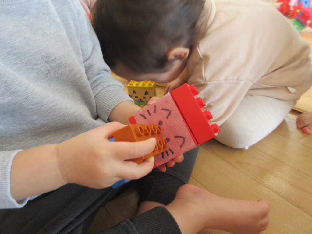 ネコが大好きなお友だち。今日はレゴブロックで大好きなネコを先生と一緒に作ってみました!