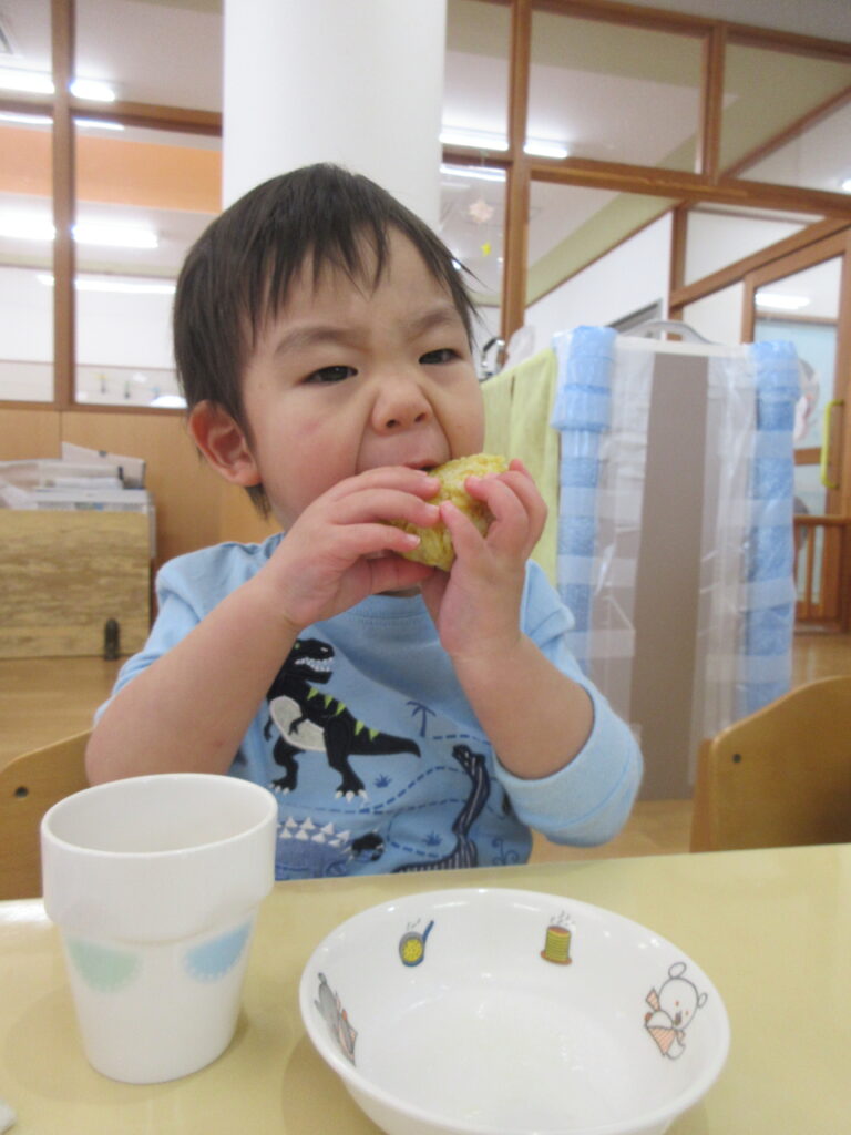 お友だちとおやつを食べる時間を楽しんでいます🍙