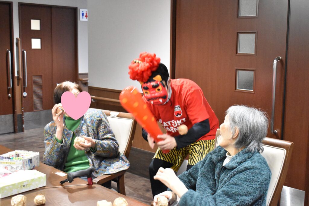 先週、柳都の杜では施設イベントとして豆まきを行いました👹