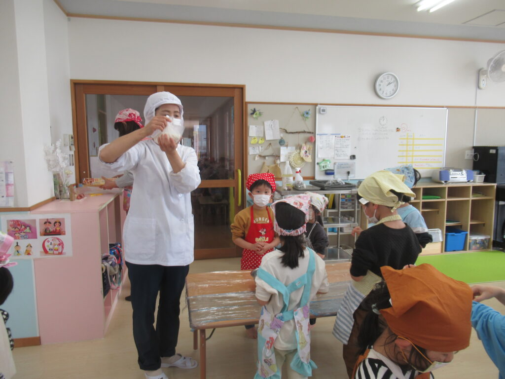 給食の先生が来てくれて、作り方を教えてくれます