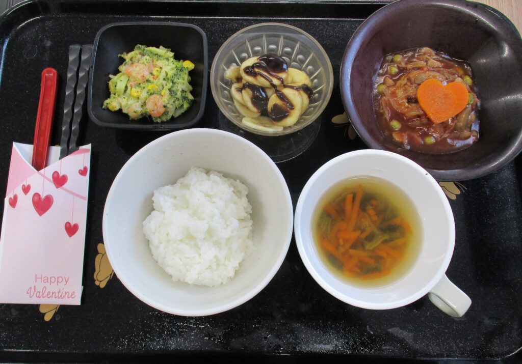 2月14日の昼食は、バレンタインデー特別メニューをご用意しました。