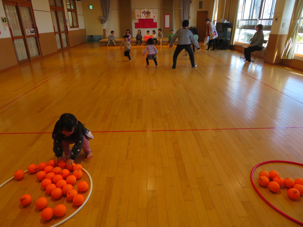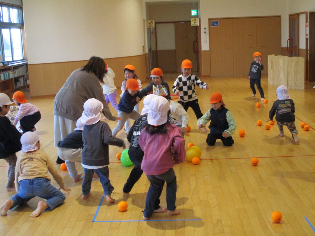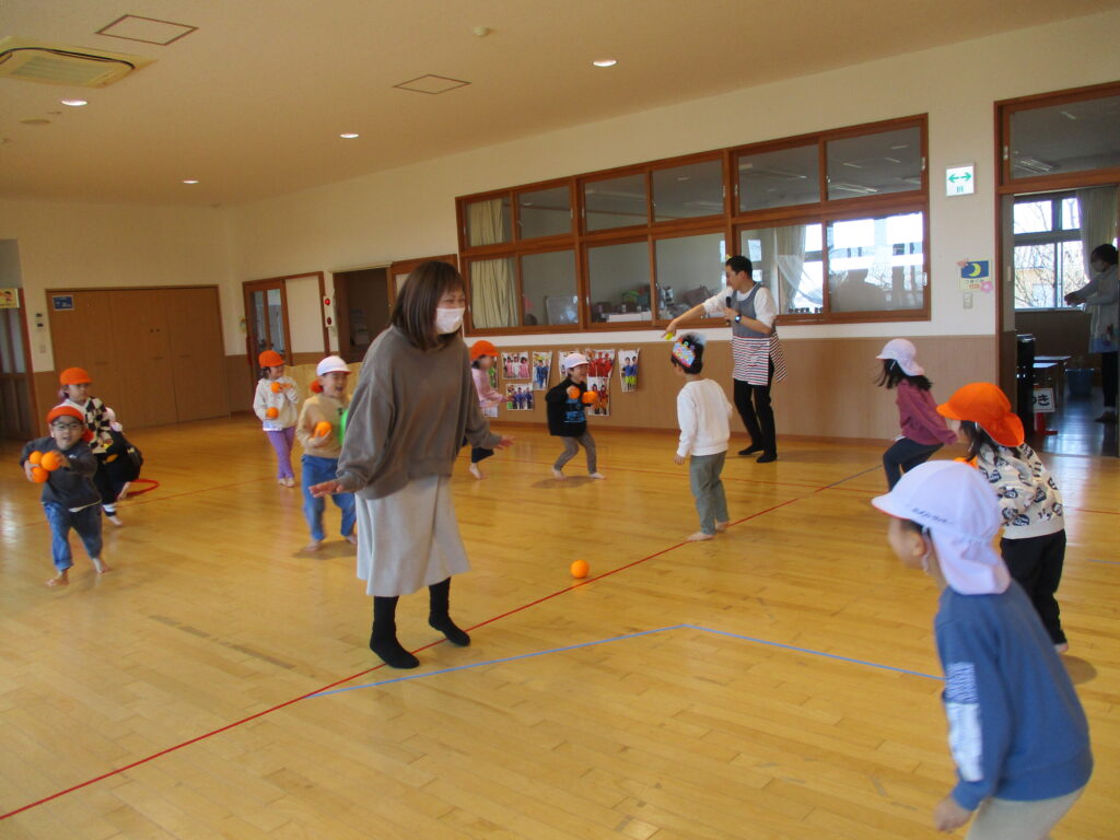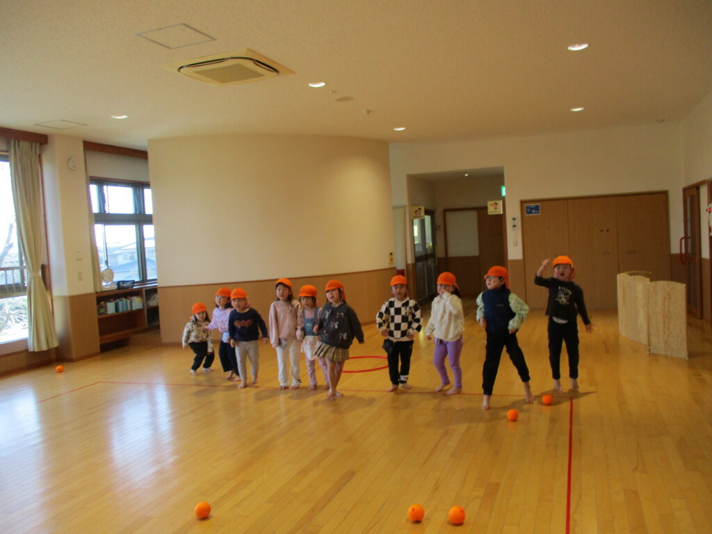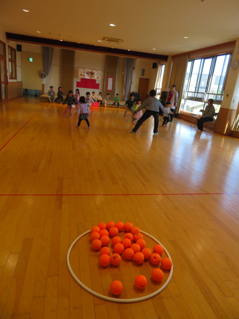 今月のお楽しみは、「チョコ集めゲーム」です!!2チームに分かれて、お互いのチョコボールを取り合います。どちらが多く集められるでしょうか!?