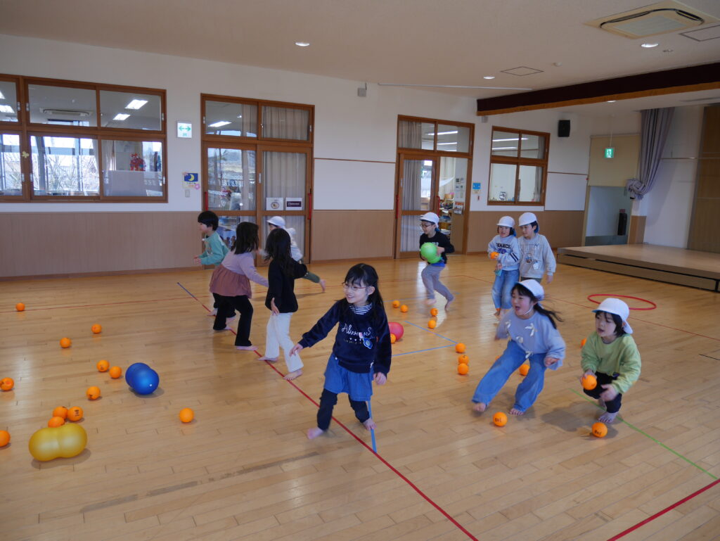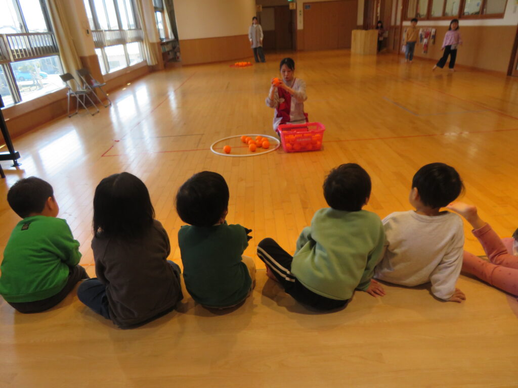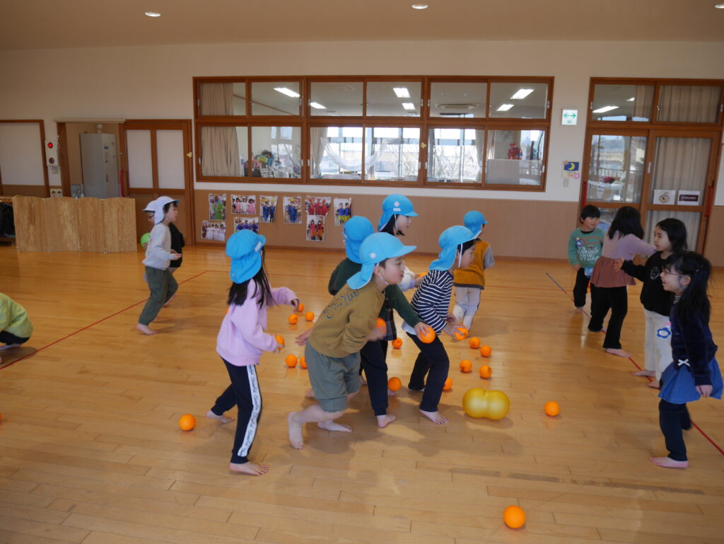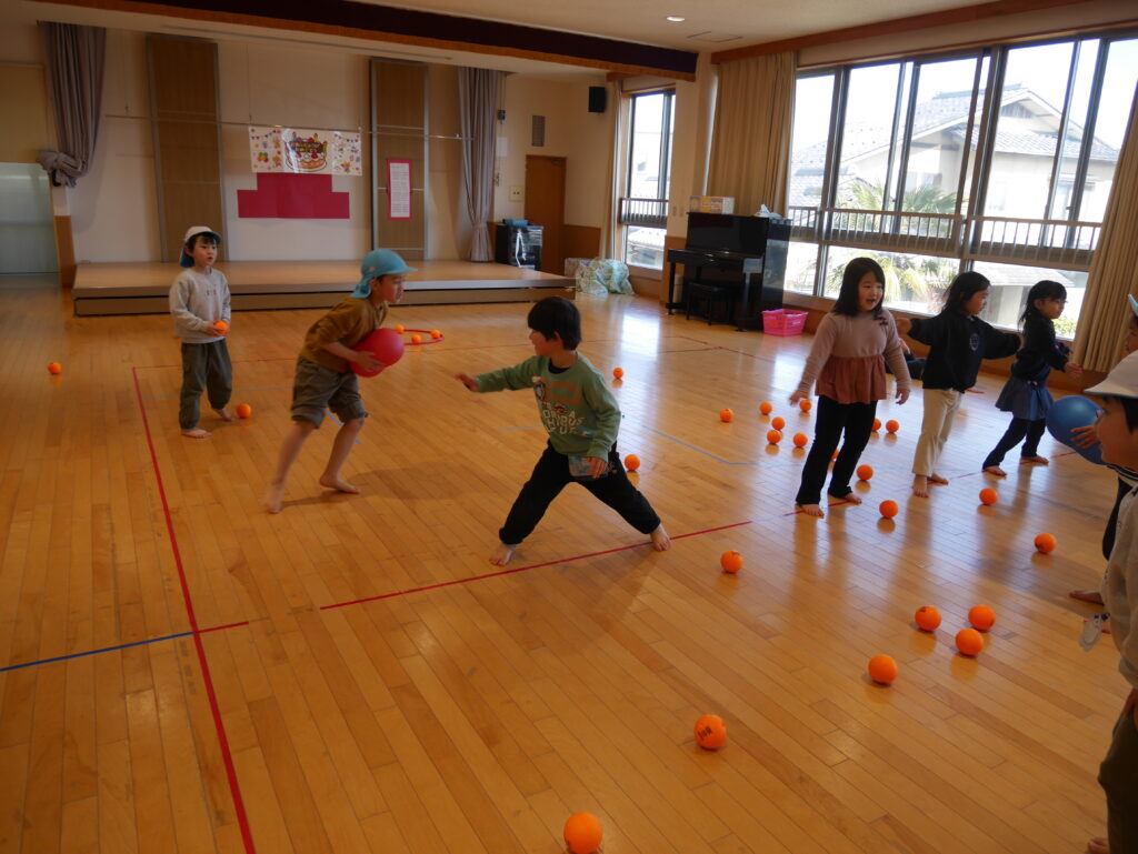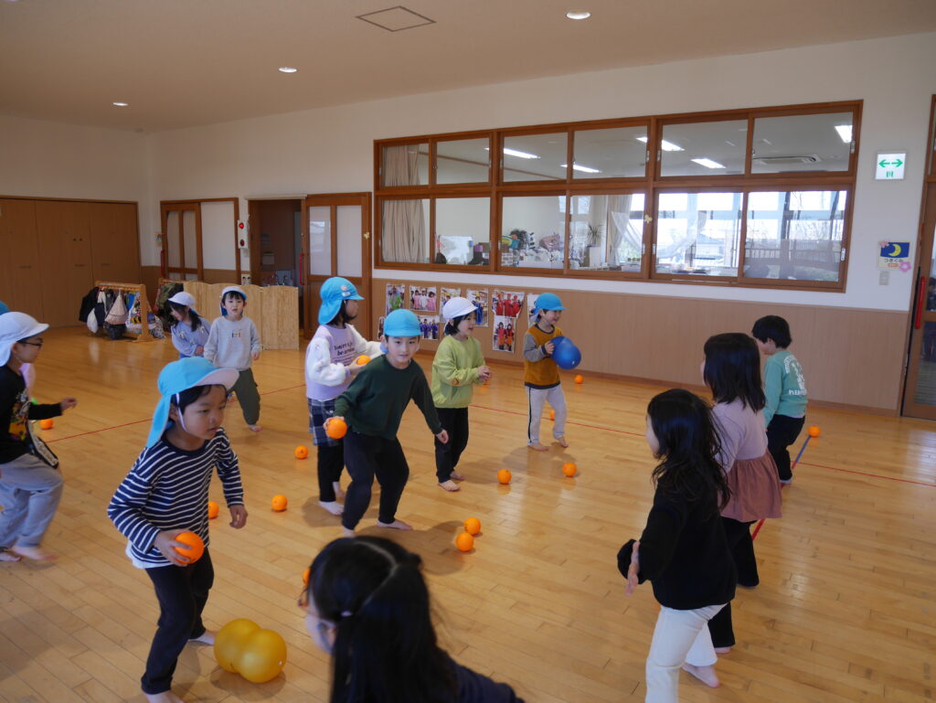 今月のお楽しみは、「チョコ集めゲーム」です!!2チームに分かれて、お互いのチョコボールを取り合います。どちらが多く集められるでしょうか!?