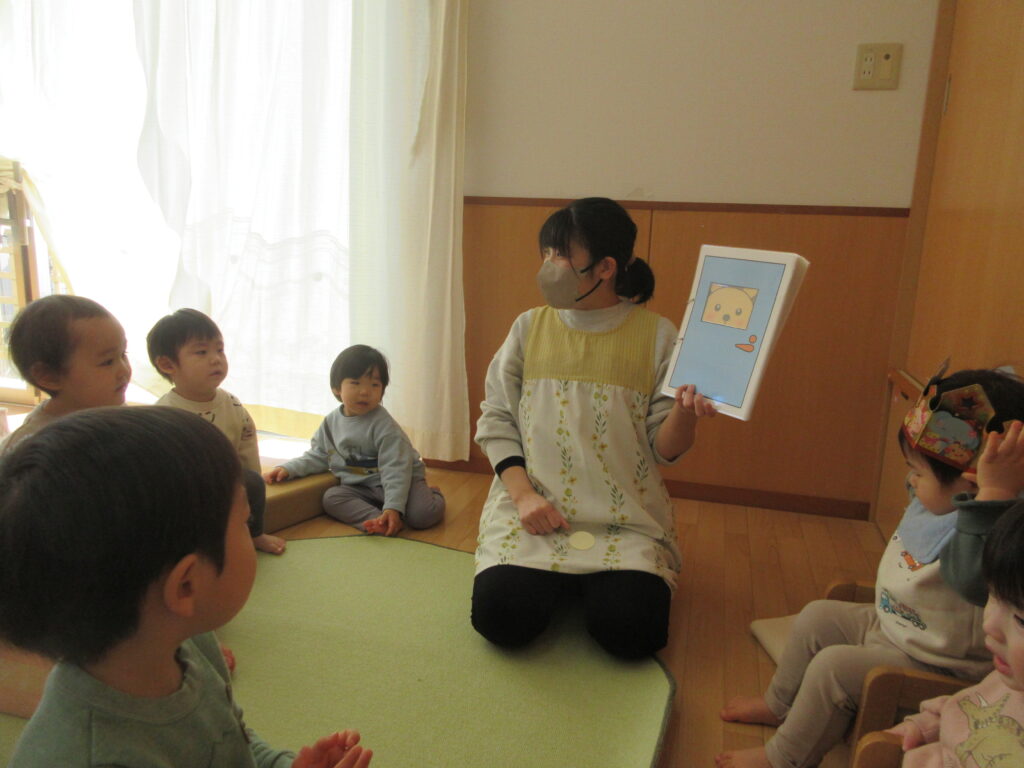なんだろうね~~?と問いかけると「しまうま!」「にゃんにゃん!」と元気な声で答えていましたよ💡