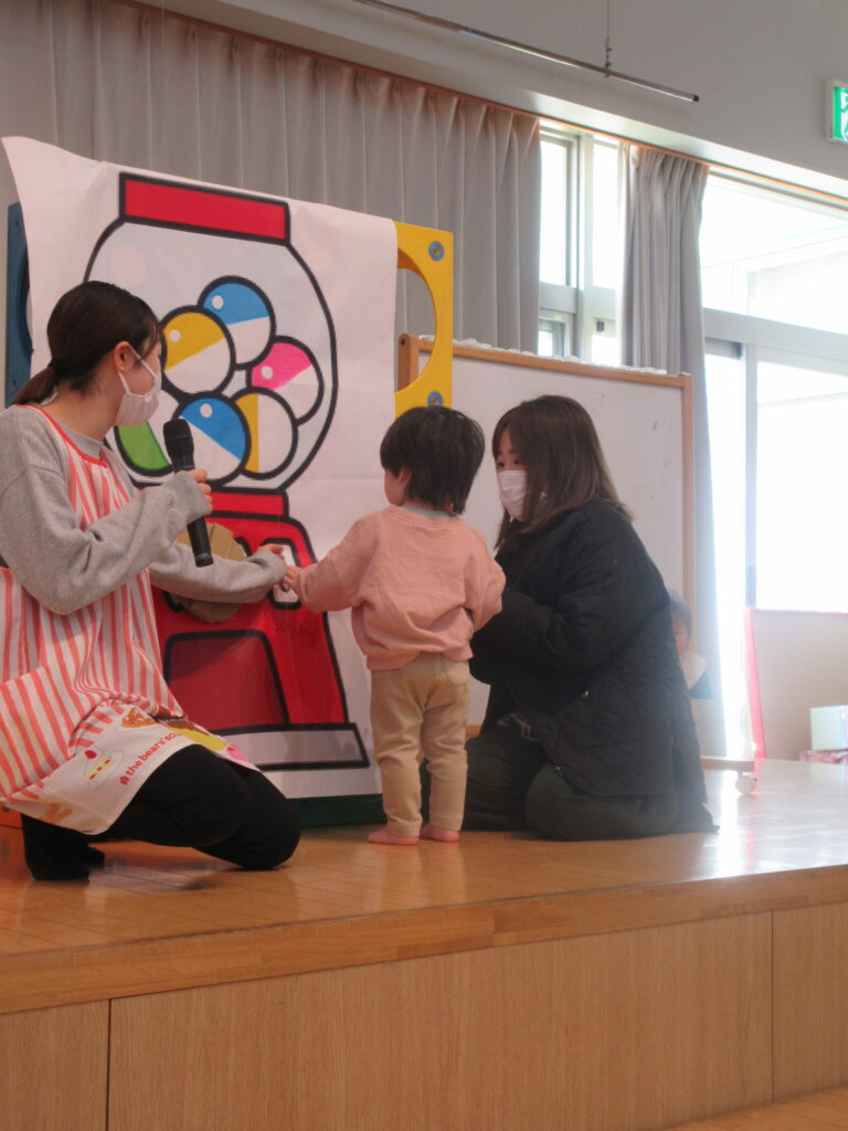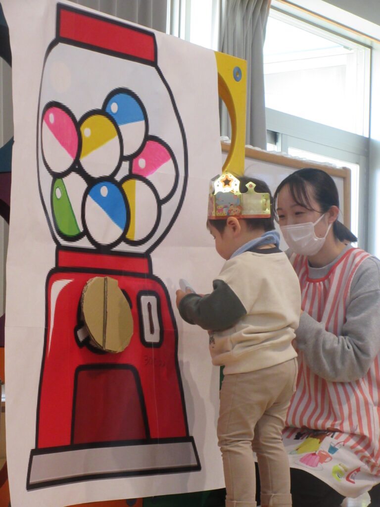 大きなガチャガチャが出てきました!カプセルの中にはお誕生児さんが!?!?!?
