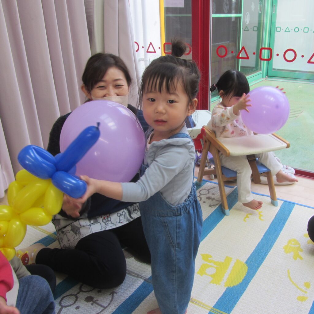 色とりどりの風船が次々に形を変えていく様子に、子ども達は目を輝かせて大喜び☆