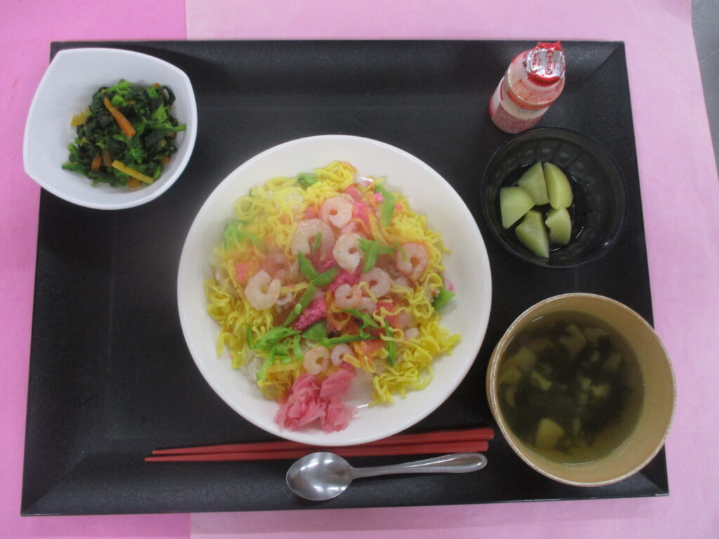 ちらし寿司に菜の花のあかか和え、若竹汁と春を感じて頂けるメニューになりました🍱