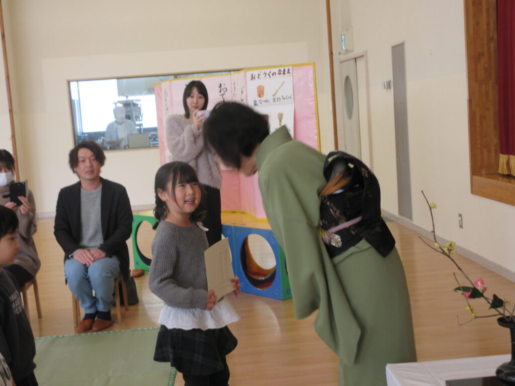最後にお茶を習ってきた子ども達にがんばった証しの「おしるし」をいただきました👌4回のお茶会!がんばりました!!🤗